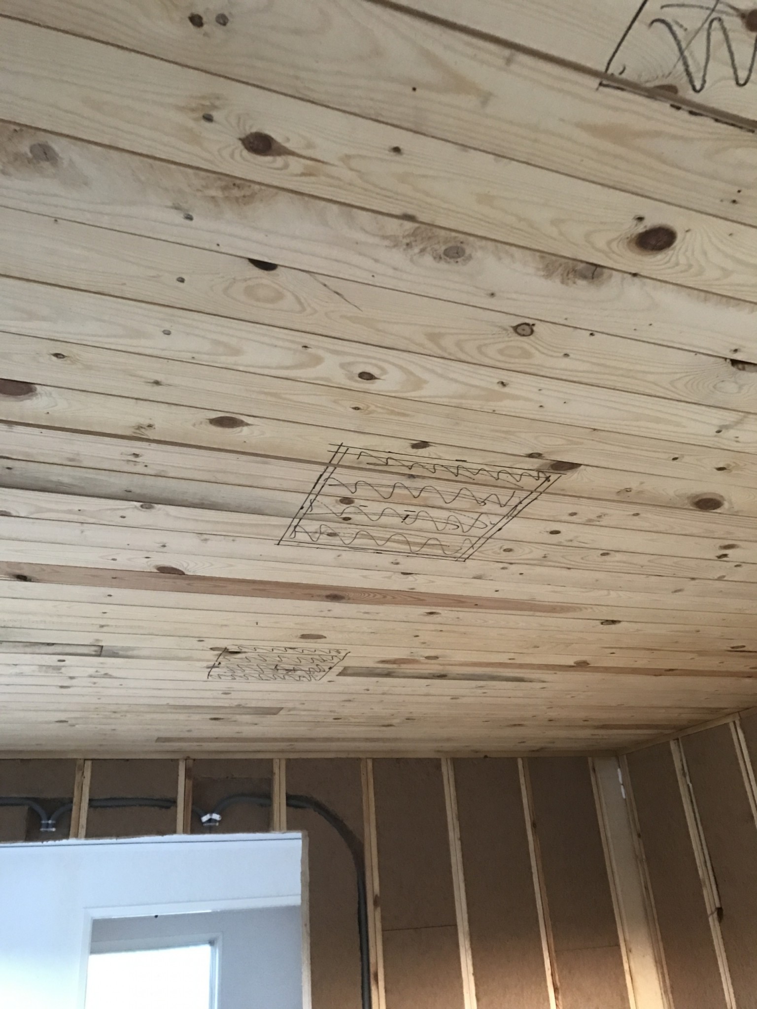 Bilden du länka är inte din men om du har så lågt i tak hade jag nog försökt ta bort furupanelen, även om det blir mer jobb så tror jag att slutresultatet blir bättre, kanske du till och med får mer takhöjd än innan!