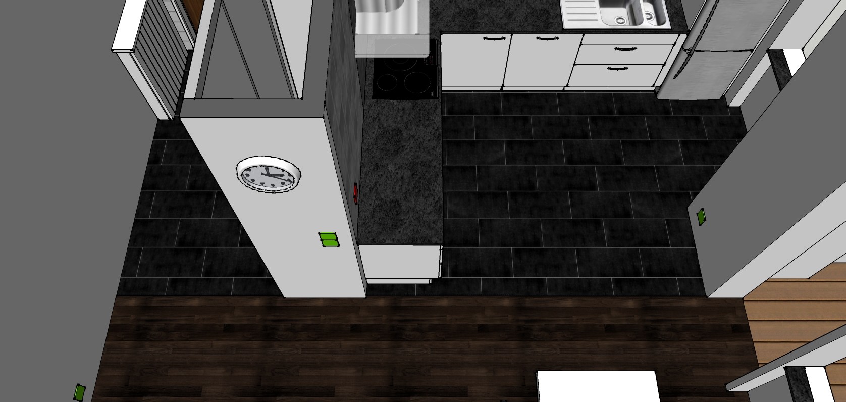 Har klinkat i hall och kök, och lagt parkett i matrum. Klinkern är nu några millimeter lägre än parketten.