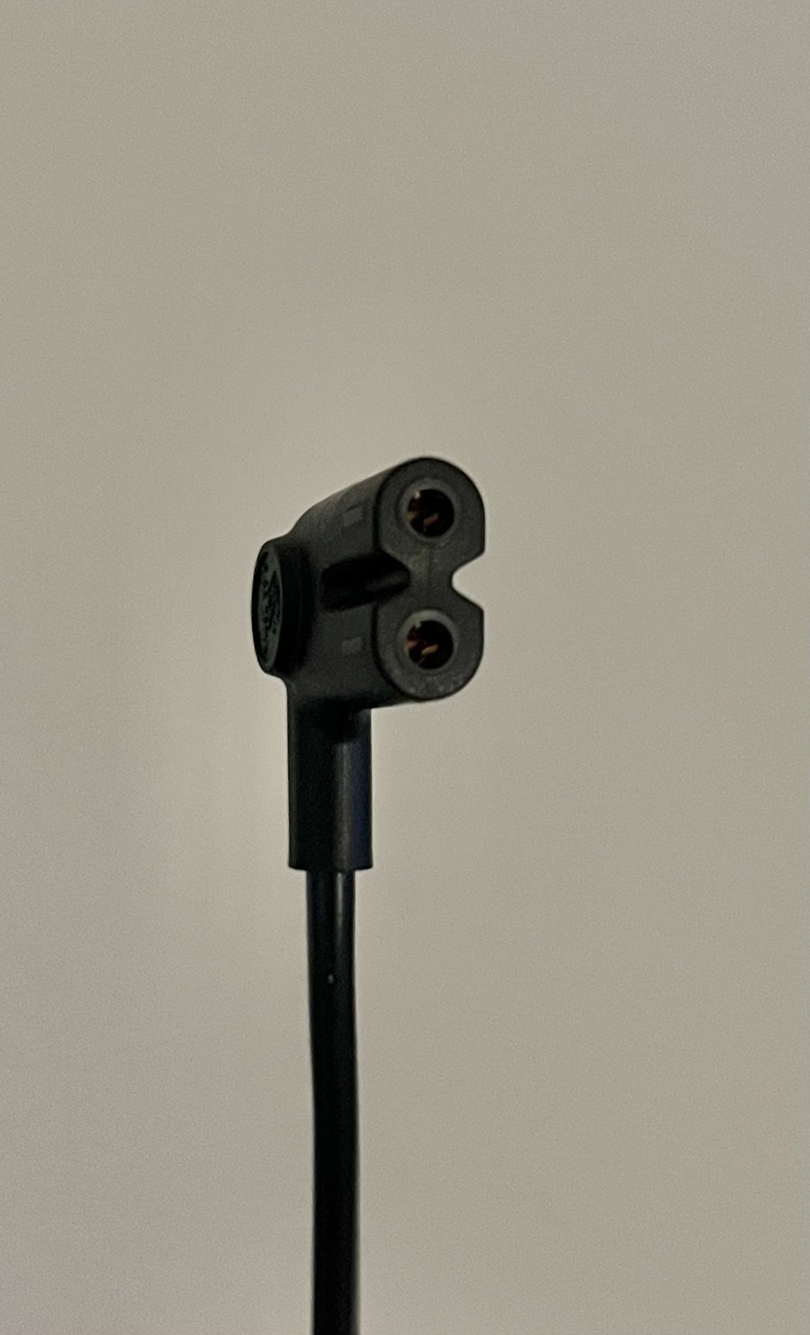 Tack för svar, det verkar vara en vanlig, avtagbar apparatkabel. Vet inte riktigt hur det skulle hjälpa oss med en längre kabel men tänker mig kanske att den skulle gå att fästa på baksidan av TV:n på något sätt så att den går ned från mitten av TV:n?