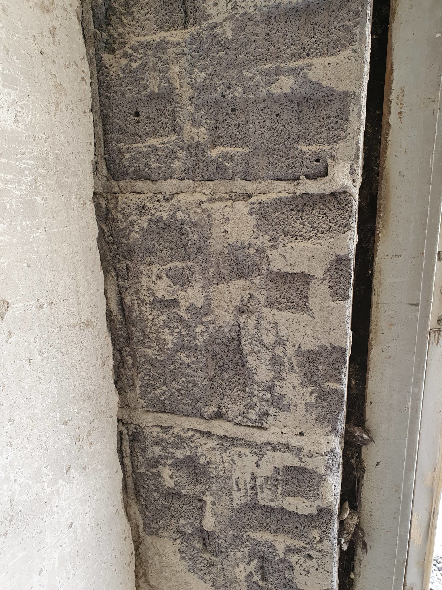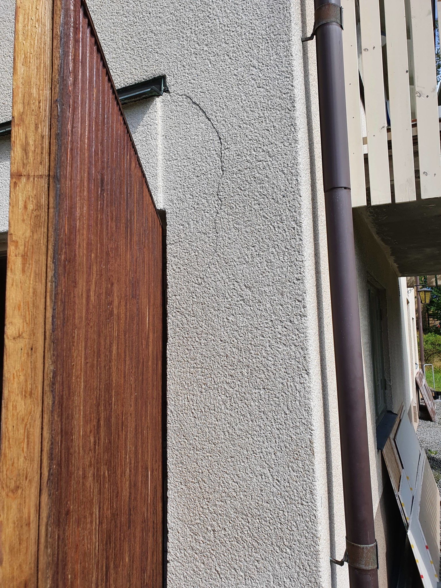Konstaterade då att husets ytterhörn som är murat i förband numera är att betrakta som en generalskarv.