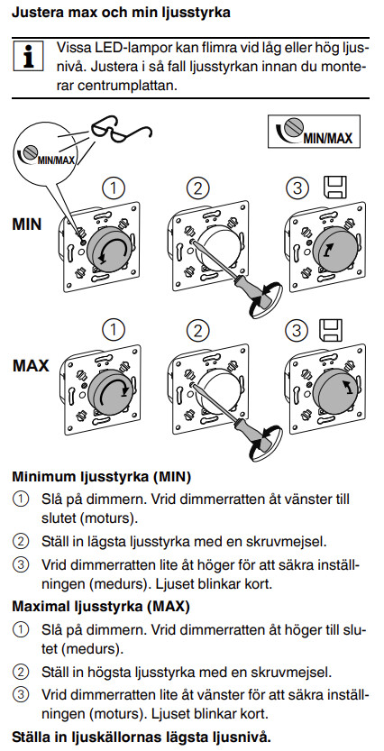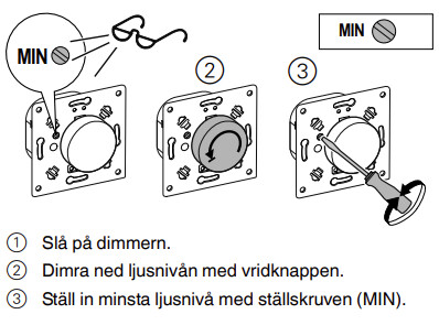 Och det där min/max-vredet på nya dimmern gör inte ett skvatt. Det händer inte ett dugg när jag vrider på det... Fattar inte varför.