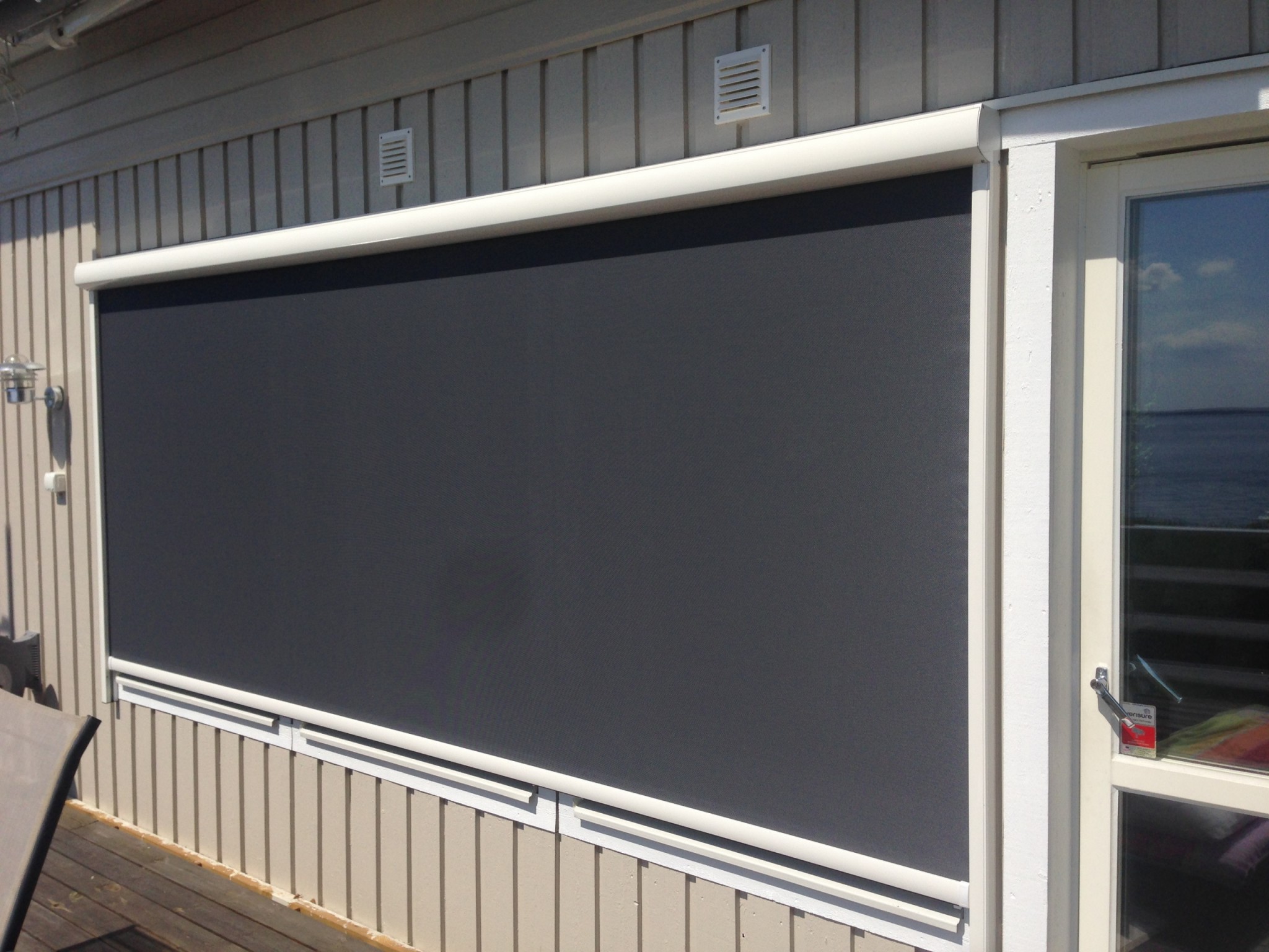 Vi installerade screen-markiser förra året på hela södersidan och är extremt nöjda (tanken var först att välja vanliga markiser). I princip helt okänsliga för vind, ingen del av utsikten skärmas av helt och 90-95 % av solinstrålningen skärmas av.