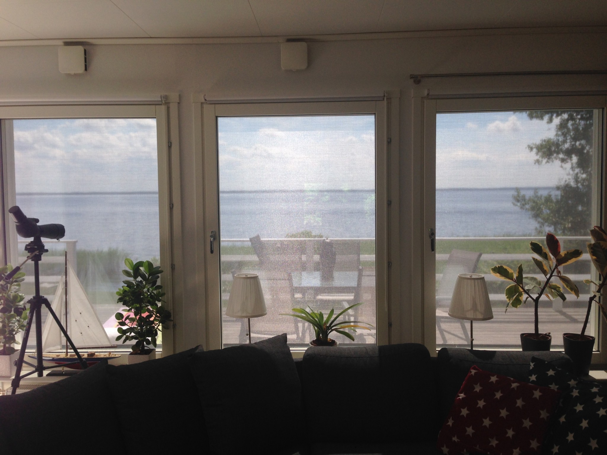 Martin C2: Vilken härlig utsikt ni har!! Det är ju det som är det härliga med screenmarkiser, att de släpper igenom en hel del av utsikten och tar bort insynen. Dock hade det tyvärr passat betydligt bättre hos oss med ett lite ljusare grått tyg, och då är vi osäkra på hur mycket utsikt som blir kvar, och att man istället kommer känna sig instängd. Det var då vi började fundera på fönsterfilm istället, men det verkar inte vara så vanligt att montera detta på fönster i hemmet.. jag har ännu inte hittat någon som har några erfarenheter från det.