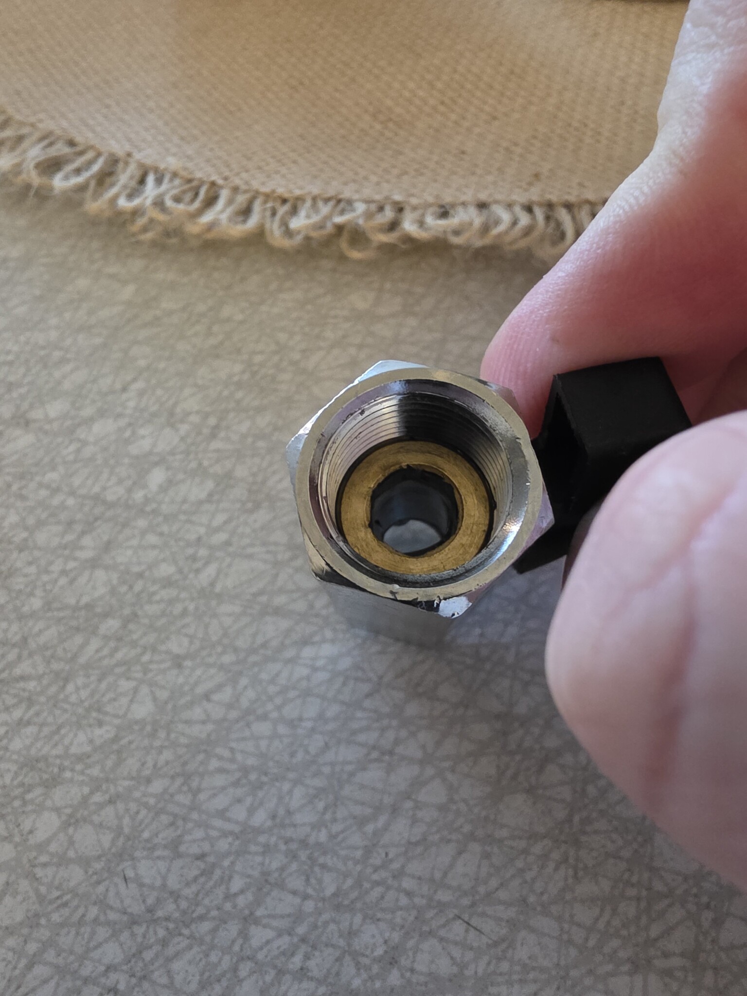Även kulventilen skall tätas med lin. Det går givetvis med gängtape också, men då brukar det inte bli tätt på första försöket.