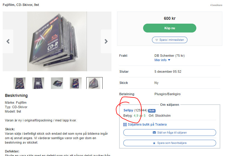 Tittar man på avslutade annonser från Tradera från Sellpy så är det 91 sidor varav endast 13 av sidorna har annonser med minst ett bud (avslutad försäljning, med andra ord).