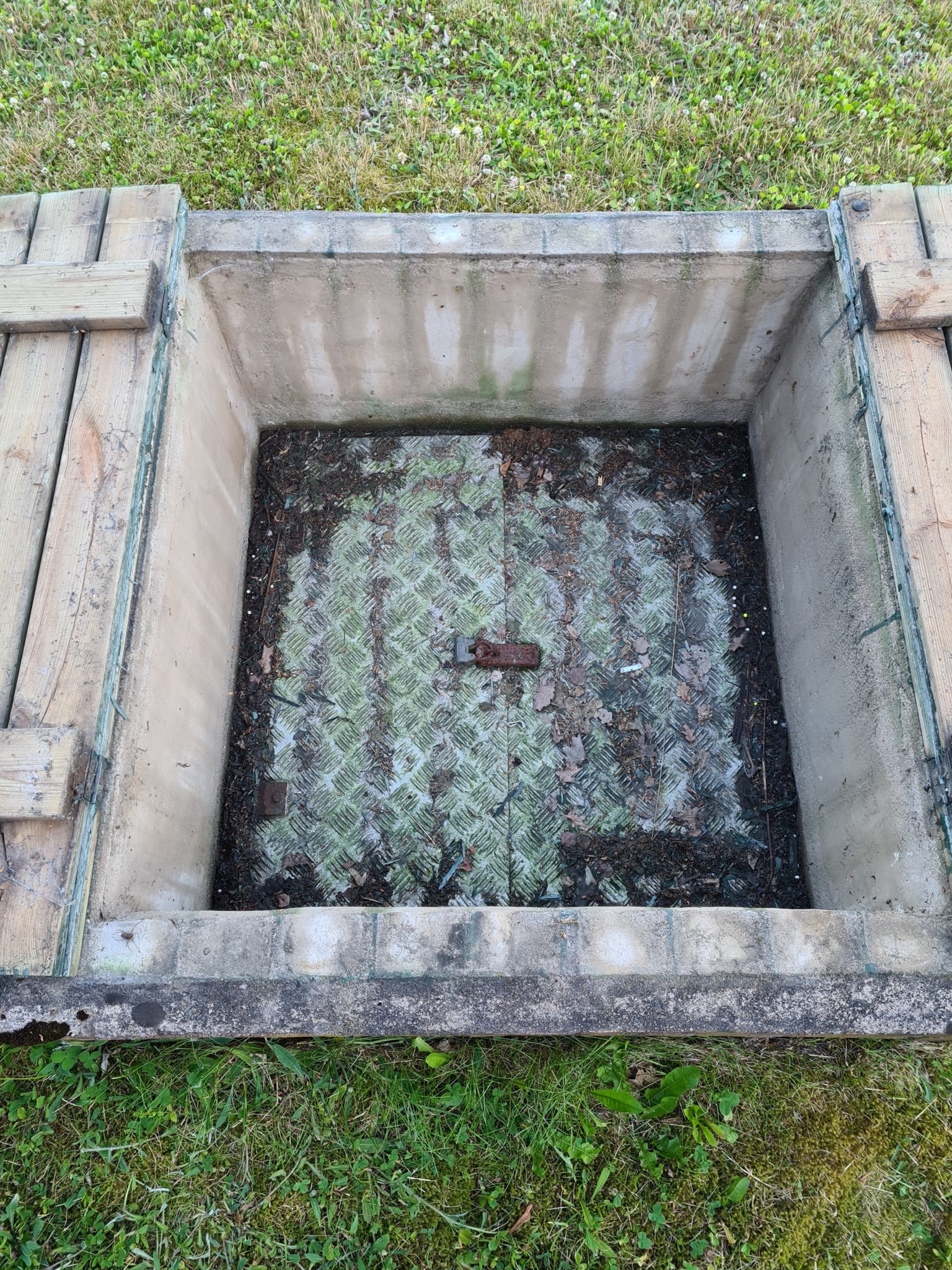 Reservoaren i sig finns kvar men pumphuset som jag åtminstone tror det är har av tidigare ägare använts som "matkällare", inga spår av några rör eller annan utrustning finns kvar.