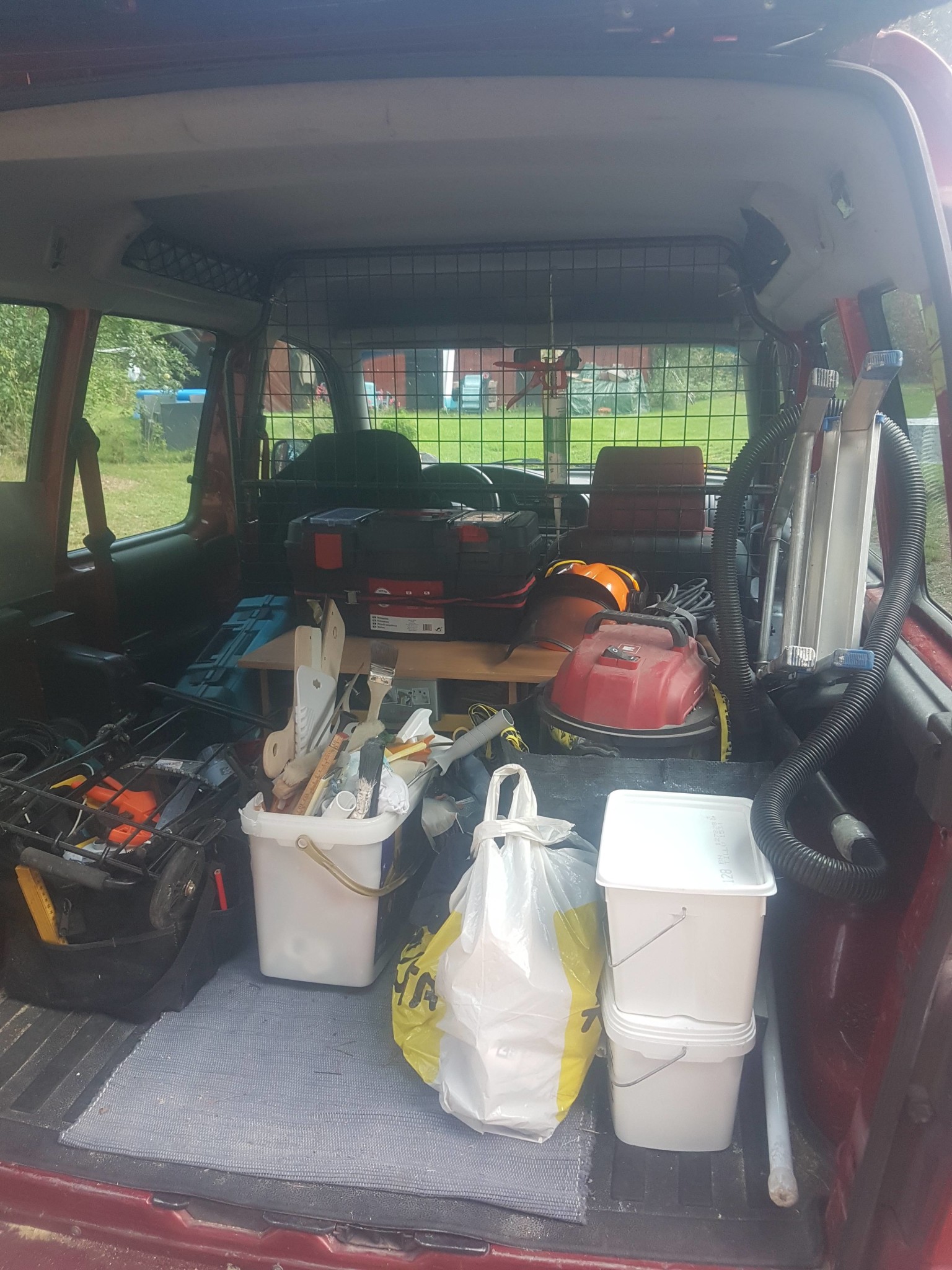 Förresten är ju ett av grundkraven på en bra byggbil att den redan från början är så pass nedsliten inuti att man inte behöver bry om motorsågen läcker litet olja där den står på sin plats på golvet framför passagerarsätet.