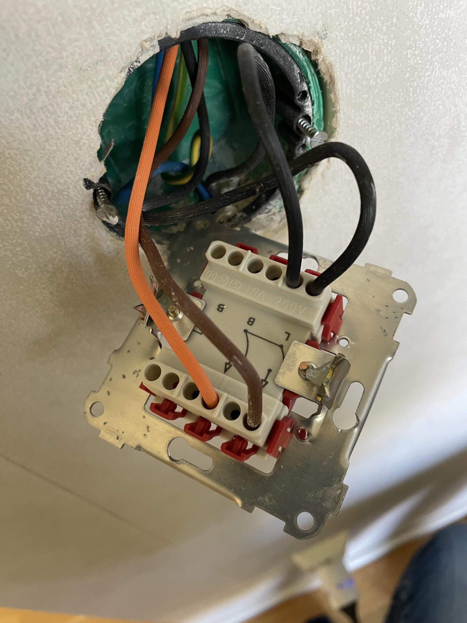 Men hur kopplar jag vidare så det är möjligt att även tända och släcka takarmaturen via den vänstra tryckknappen som jag kommer att komplettera med en impulsfjäder?