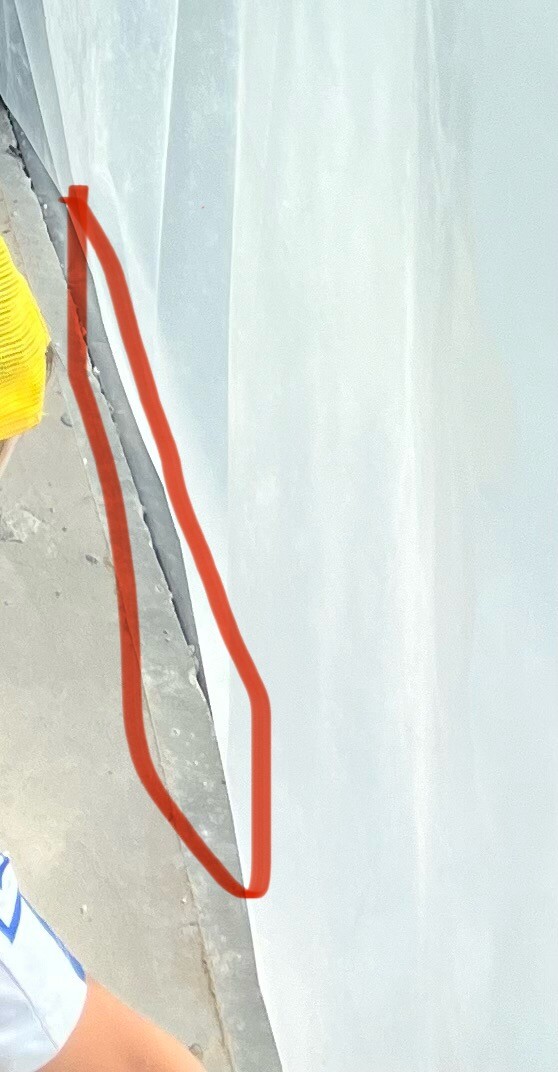 Lite fundersam också vad man kan förvänta sig inifrån då det är en glipa mellan golv (ska bli slipat betonggolv) och karm.