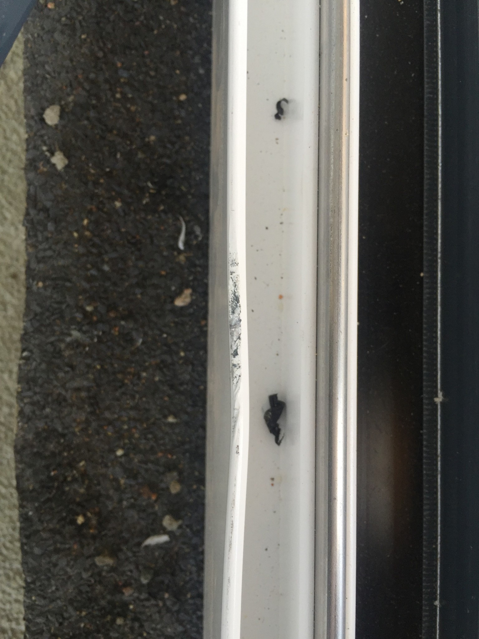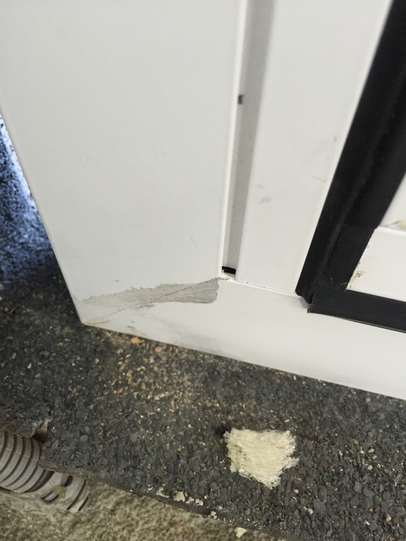 Det sitter bitar kvar av den borttagna listen på utsidan – och detta ser svåra ut att få bort själv: