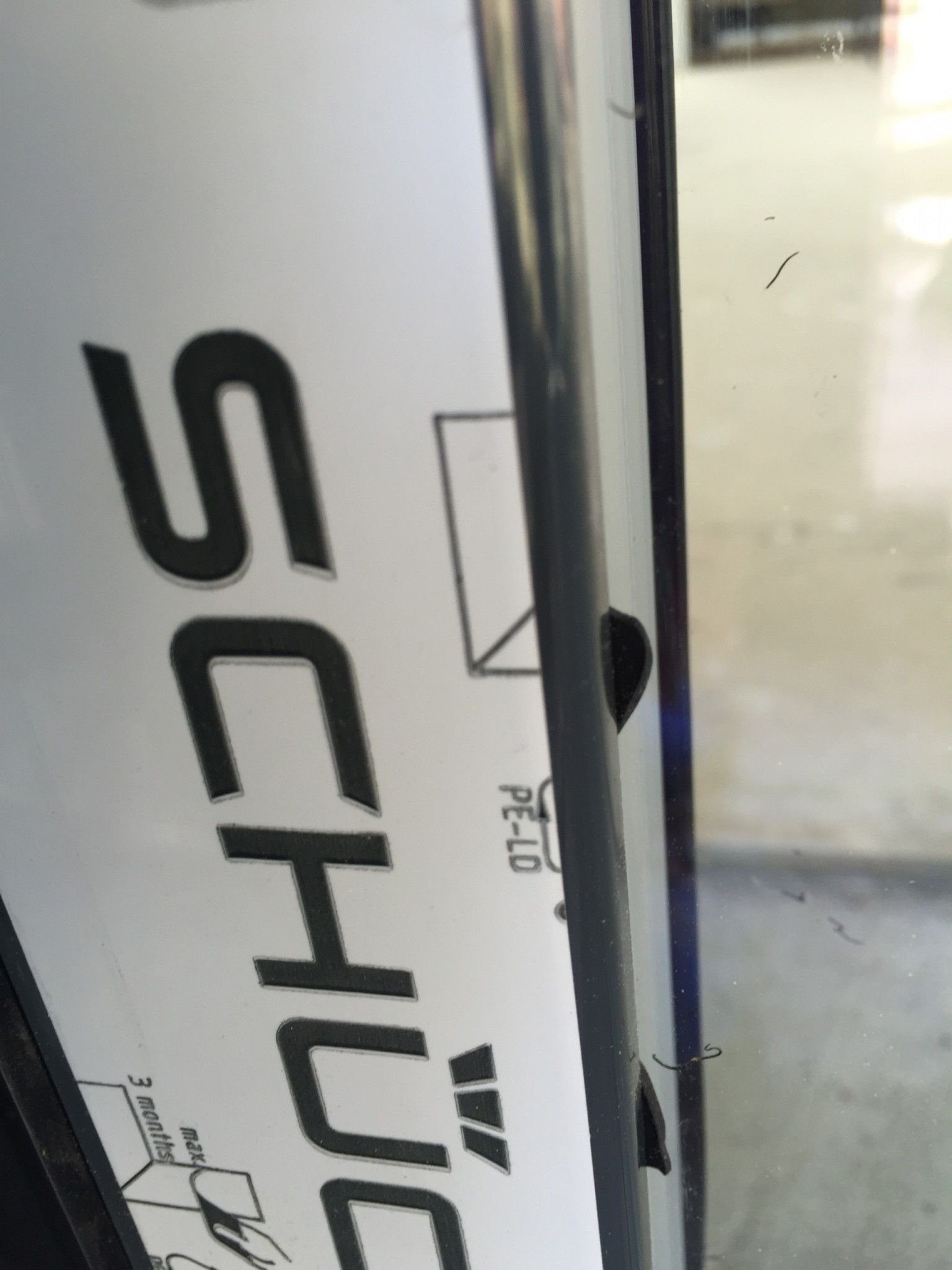 I kanterna är den vita listen skrapad (jag har skrapat med nageln och konstaterat att det inte är smuts som fastnat):