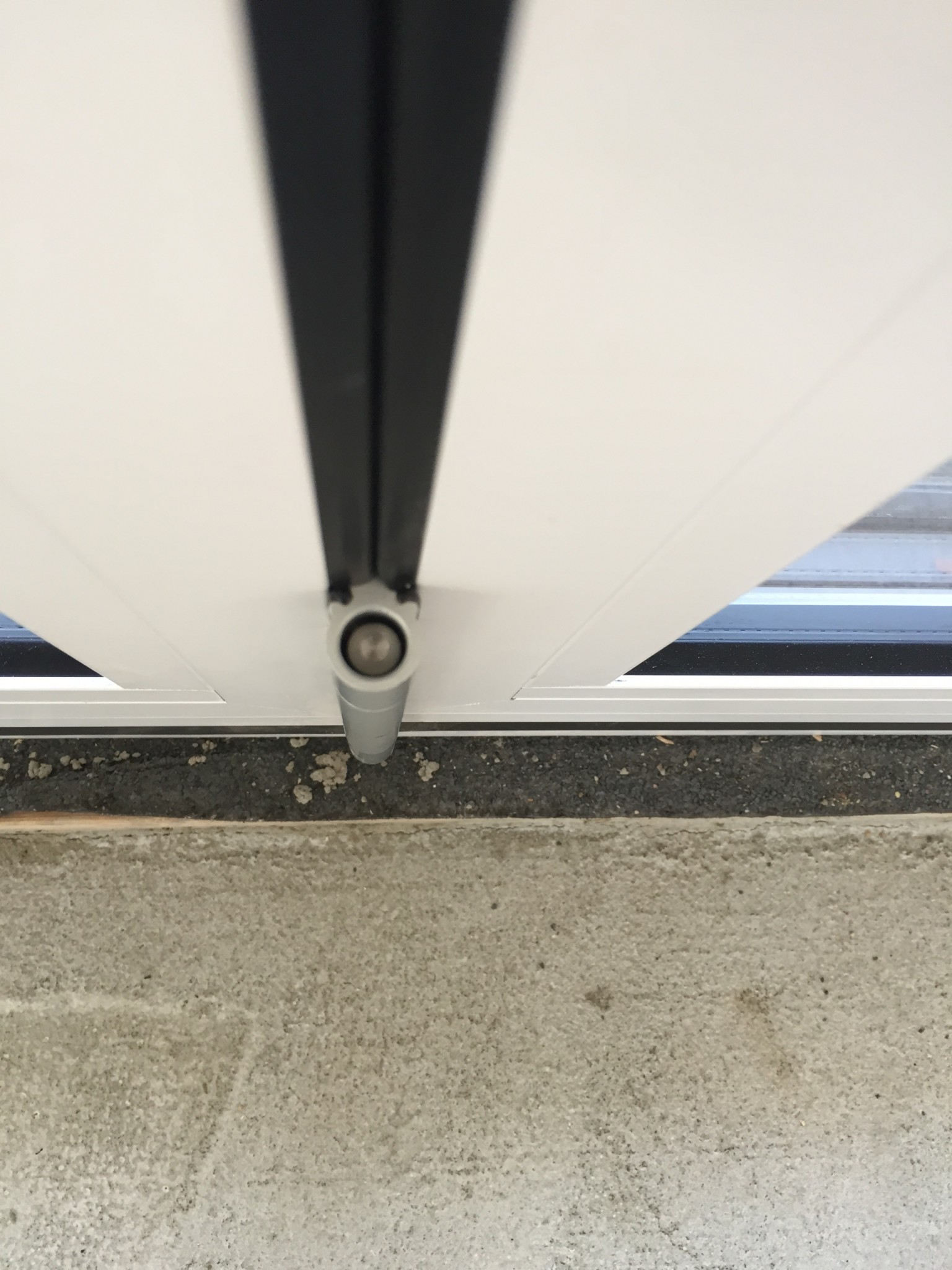 Till på köpet gnisslar dörren när man öppnar och stänger den (antar att hjulen behöver oljas). Man kan få dörren att stanna om man öppnar den och sen "stoppar" dörren, men om man ger den en knuff för att stängas så börjar den stänga sig, men sen stannar den och glider sen sakta upp igen (jag måste dock testa detta igen när det är helt vindstilla ute, för att försäkra mig om att detta inte är pga vinden).