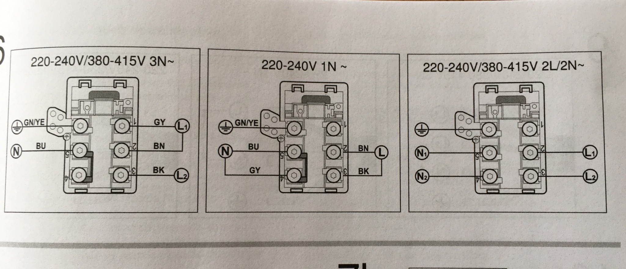 Kopplingen med två äkta faser och nollsidan byglad passar bra här hemma. Är ju ritad i vänstra schemat rätt förutom att de av någon anledning ska göra av med alla fem ledarna oavsett koppling (är ju bra vid enfasfallen både L-N och LL-NN) men udda vid två- och trefas och att det felaktigt står 3N~ där det borde stå 2N~ och att det vore tydligt att L3 kan anslutas men utan funktion.