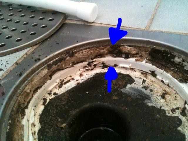 Vi bor i en bostadsrätt, och upptäckte häromdagen att det i vår golvbrunn i duschen trillat bort en stor bit silicon. Mellan golvbrunnen och mässingsdelen som utgör en del av golvet satt det en ring av silicon, och den hade trillat loss. Se det bifogade fotot där det är tydigare att se vad jag menar. Det var alltså mellan de två ditmålade pilarna som siliconet satt.