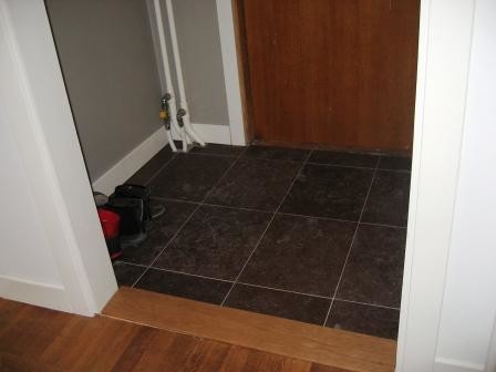 Prisolröret antar jag att du menar eftersom jag inte körde med PEX. Nej, den la jag inte med flit med nån lutning. Som Du man kanske ser på bilden så är det en järnbalk som hindrade mig från gå rakt 90 grader upp till ballofixerna. Möjligen hade det kunnat göras lite bättre med ett bockverktyg för prisolrör, men jag hade inget sånt tillgängligt. Avluftningen behövde jag inte bry mig om eftersom radiatorrören går upp till våning två och betjänar en radiator där. Så jag luftar min golvvärmeslinga på elementet en trappa upp. Funkar kanon. I annat fall krävs givetvis en luftningsmöjlighet på högsta punkten. Det kan man t.e.x. ordna med ett förkromat T-rör som man sätter en bussning och en vanligt luftningsventil i. Elsingan la jag bara in i fall att, eftersom det är en liten kostnad om man tex köper på Rinkaby men jag har inte ens kopplat in den än (röd kalibrerad kalksten från Borghamn är däremot inte gratis men det kunde man festa till med när det handlar om 1,5 kvm...).