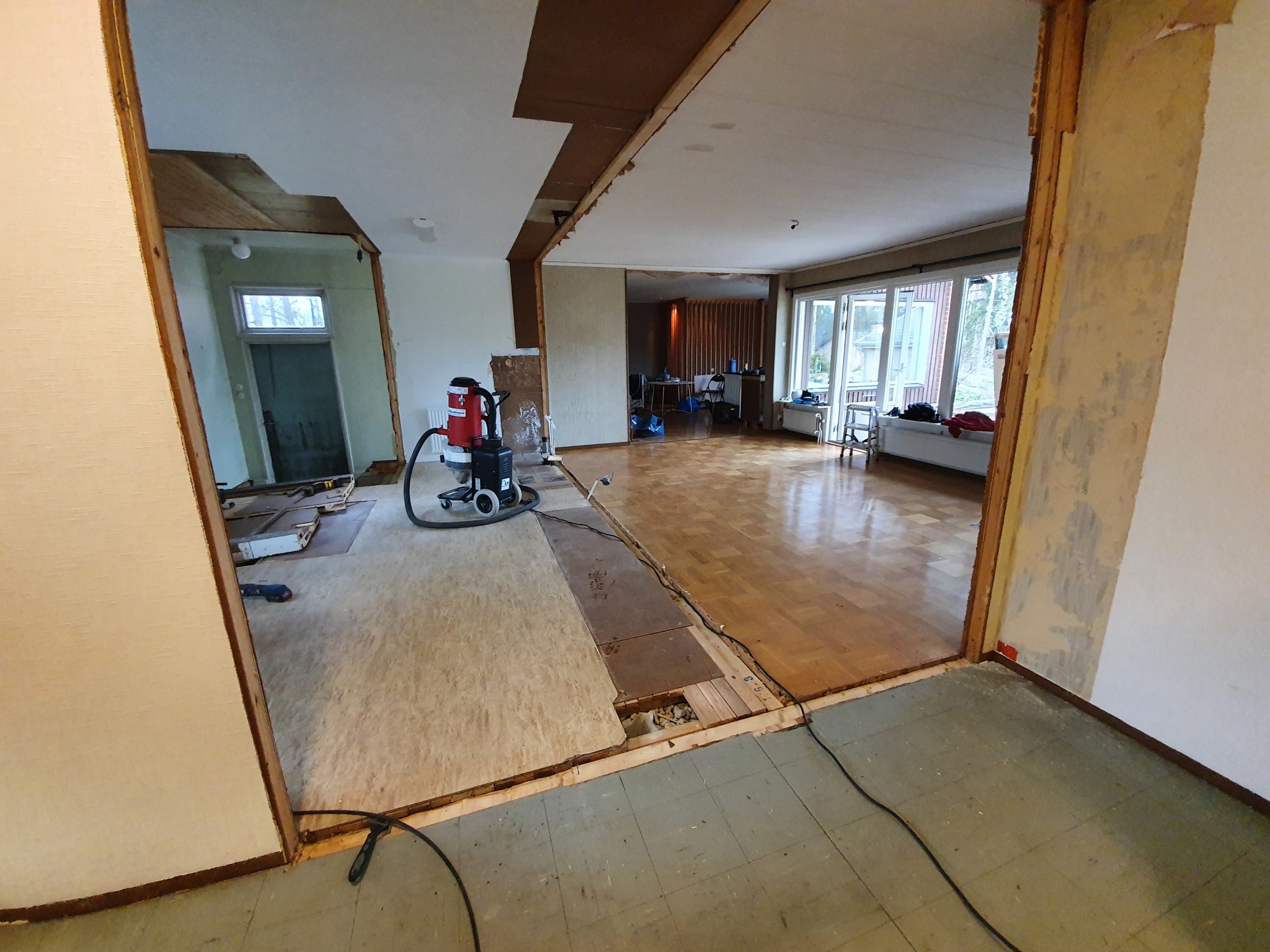 Självbärande takstolar? Okej att riva vägg?