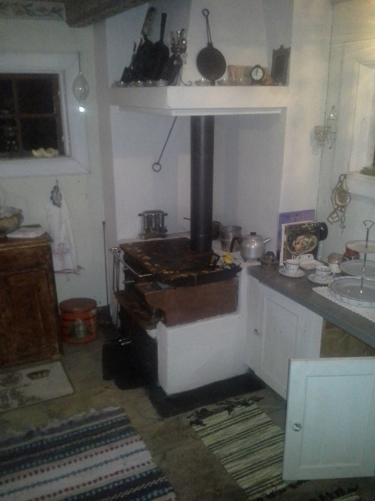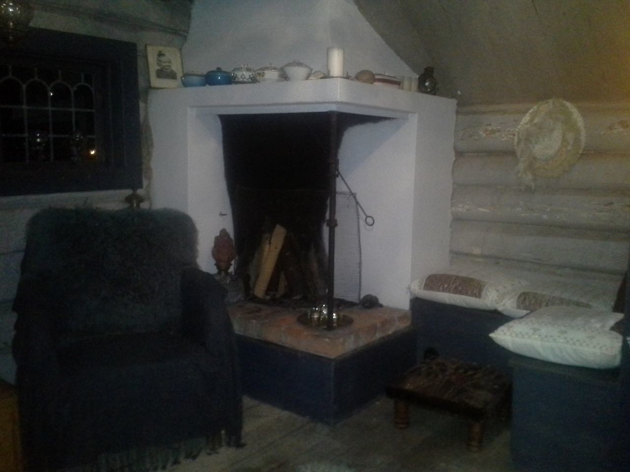 Häbret, består av ett rum på nedre plan med en liten kökspanna/eldstad.