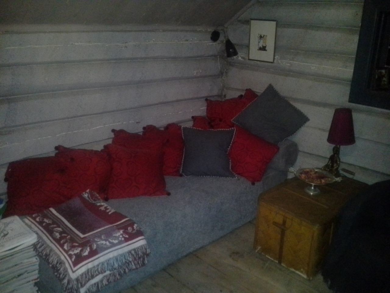 Lofthuset, detta består av fyra rum varav ett har en platsbygd säng.
