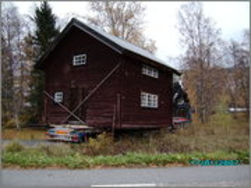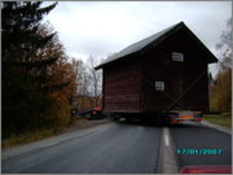 Efter det lilla jobbet med trappan på häbret så påbörjade vi ett nytt lite större arbete. Ca 19,5 ton närmare bestämt. Denna lilla stuga köptes och flyttades till vår gård. måtten var 6,2 meter bred, 6,4 meter lång och höjd 6-7 meter.