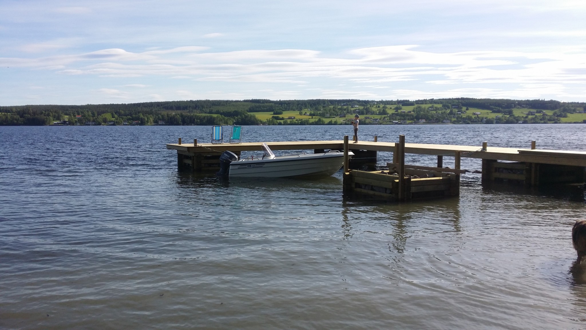 Äntligen kan man lägga till båten! Hm kan jag ha byggt bryggan lite för stor?