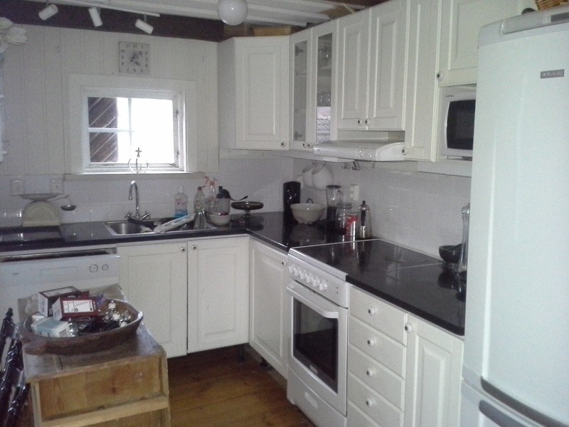 När huset kommit på platts så rev i ut det gamla omoderna köket. Det gamla köket var så litet att och smalt så att man helst gick in lite snett och sedan backa man ut för att vända om man skulle ha något på andra sidan. Så kan man inte ha det så det, rev vi bort till förmån för ett lite nyare.