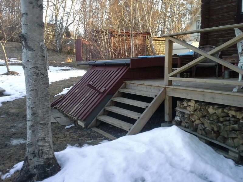Trappan är lite brant men den är byggd för att matcha vinkeln på ingången till källaren.,