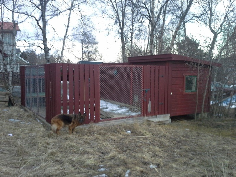 Hundarna behövde ett litet krypin. Jag hade planerat att plocka med mig hundgården från vår tidigare gård, men de nya ägarna vill ha kvar den. Jag visste att jag hade lite nät kvar så jag tänkte att jag kastar ihop en ny lite snabbt. Klart var att den nya hundgården skulle vara lite exklusivare än tidigare (sen så tycker jag ju om att bygga).