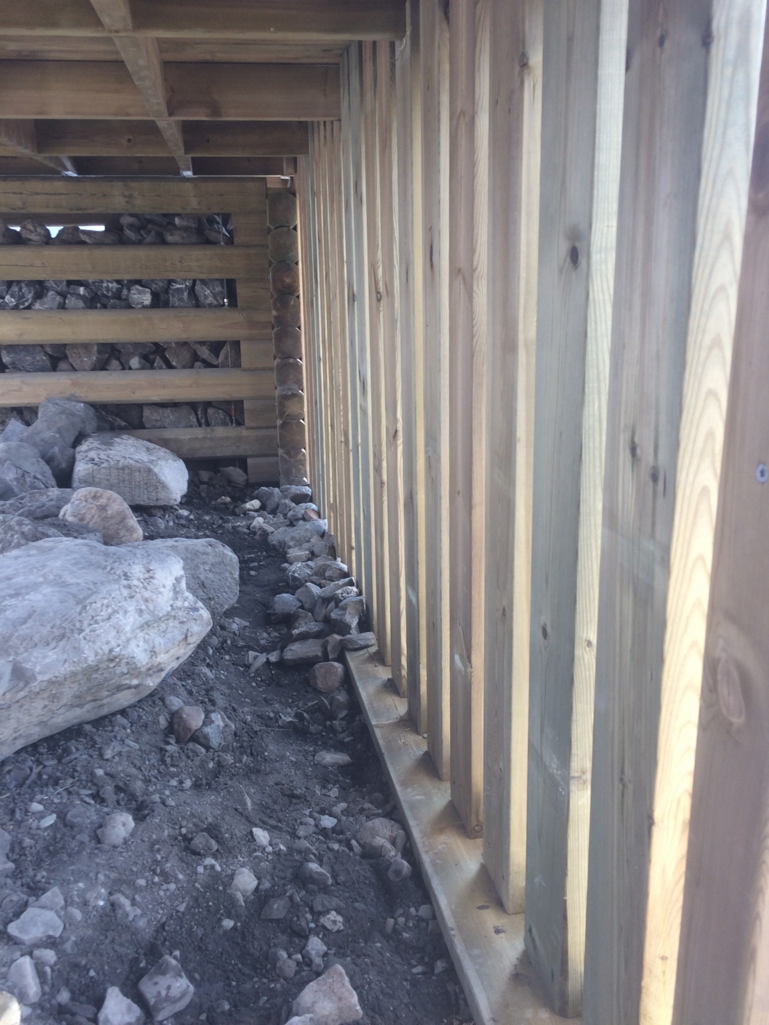 Hur håller du lådorna på plats? Har du slagit ner stolpar i mark, gjutit plintar, eller är det därför du har en sektion med grus i. För att hålla det på plats?