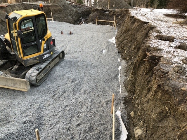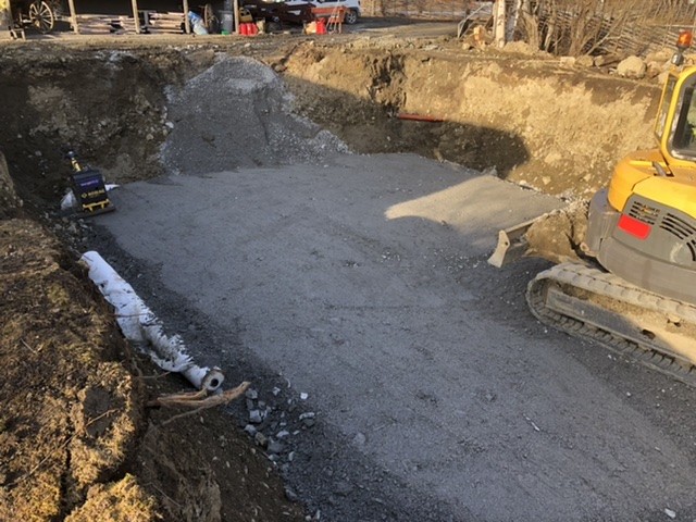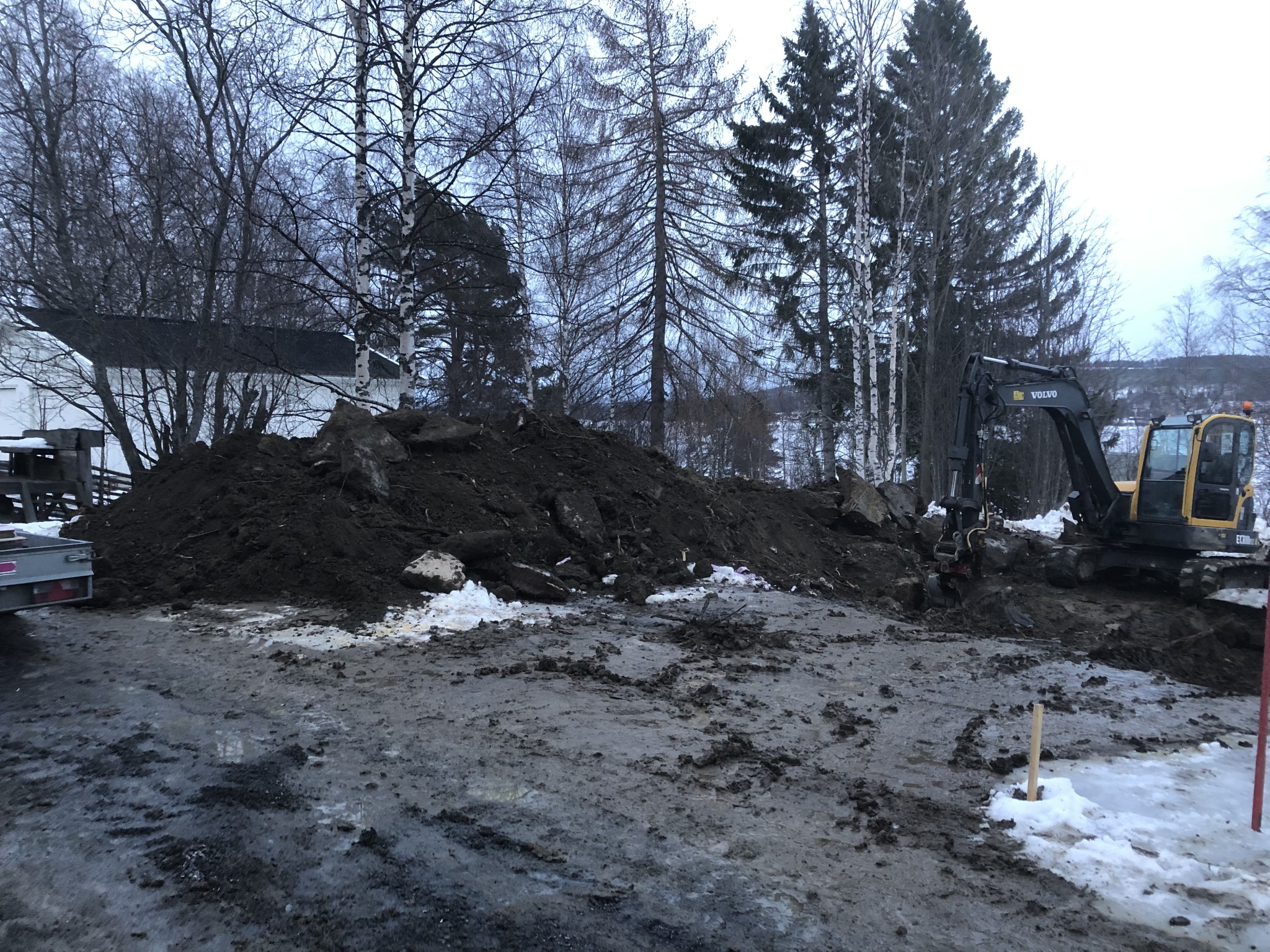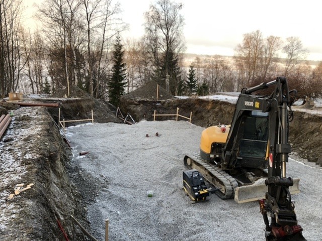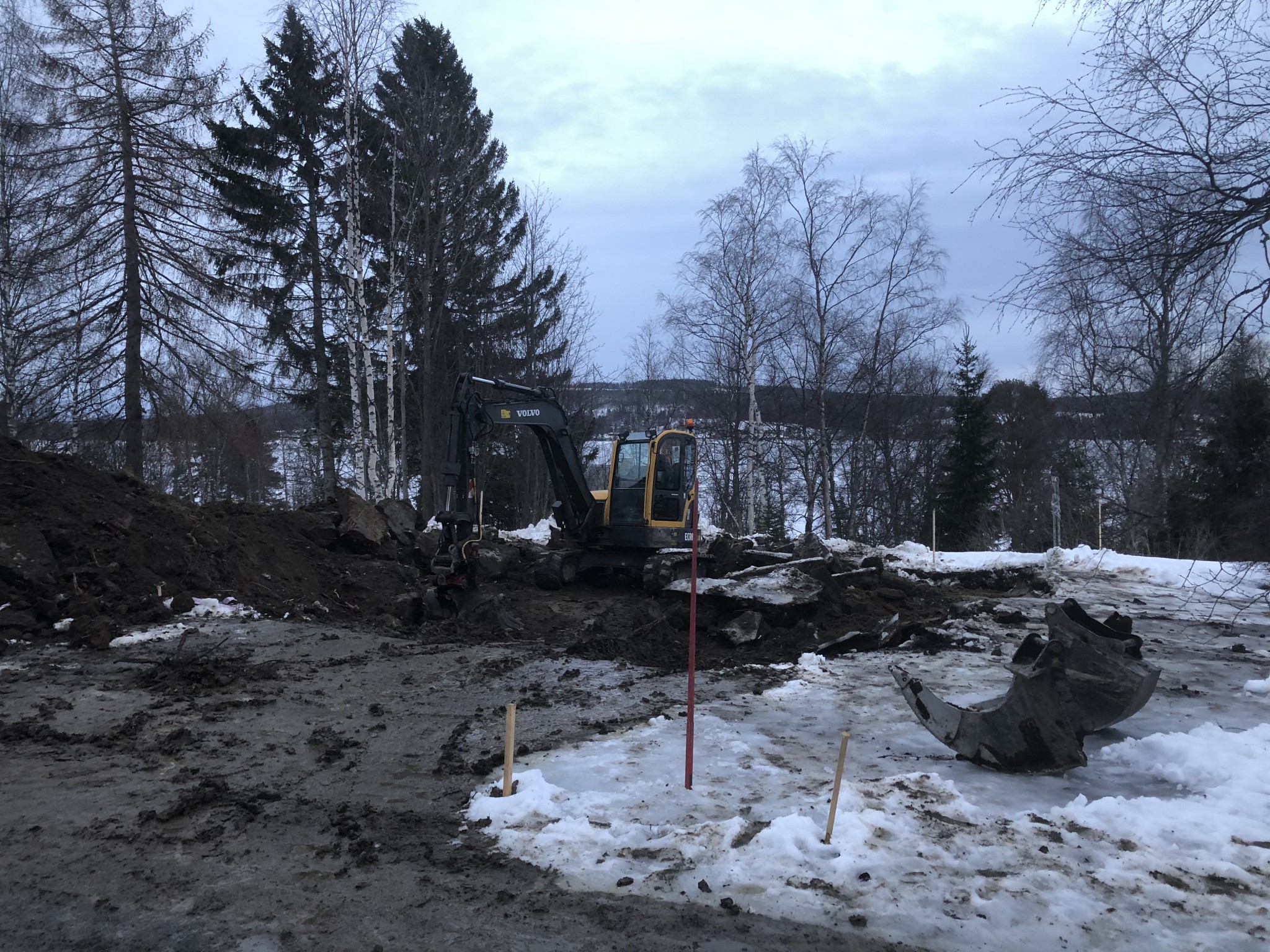 Det blir en stor grop, de räknar med 3,1 meter ungefär där det är som djupast. Snart har de grävt klart .