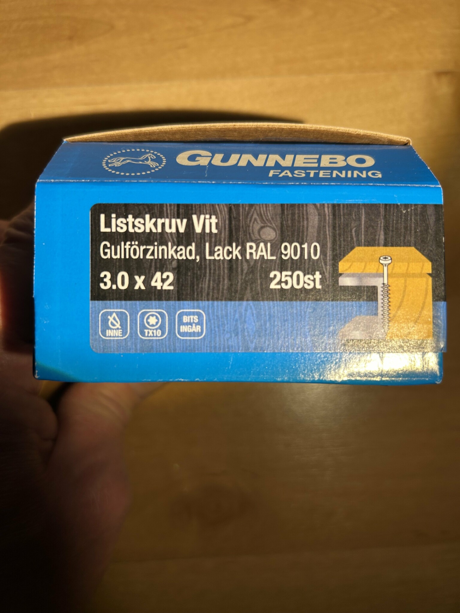 Det finns ganska många sorters listskruv. Jag gillar Grabbers listskruv med toppfräs https://www.grabber.se/skruvarinfastning/LTX48VITCM magnus64 skrev: