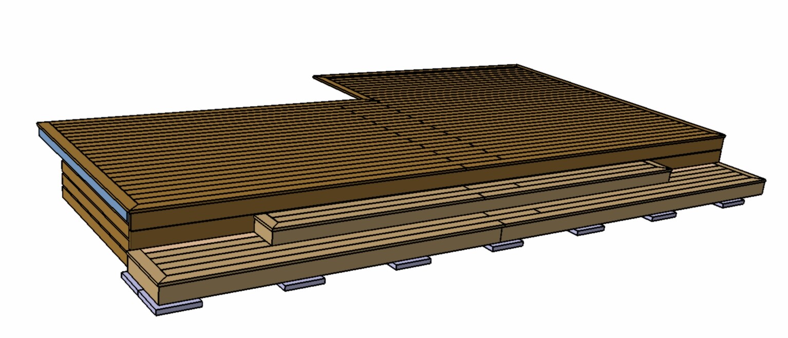 Jag har en altan som är upphöjd 60 cm över marken och fäst vid huset på två sidor, medan de andra två sidorna är öppna (som på den bifogade bilden). Under plattformen är det jord (ingen grus).