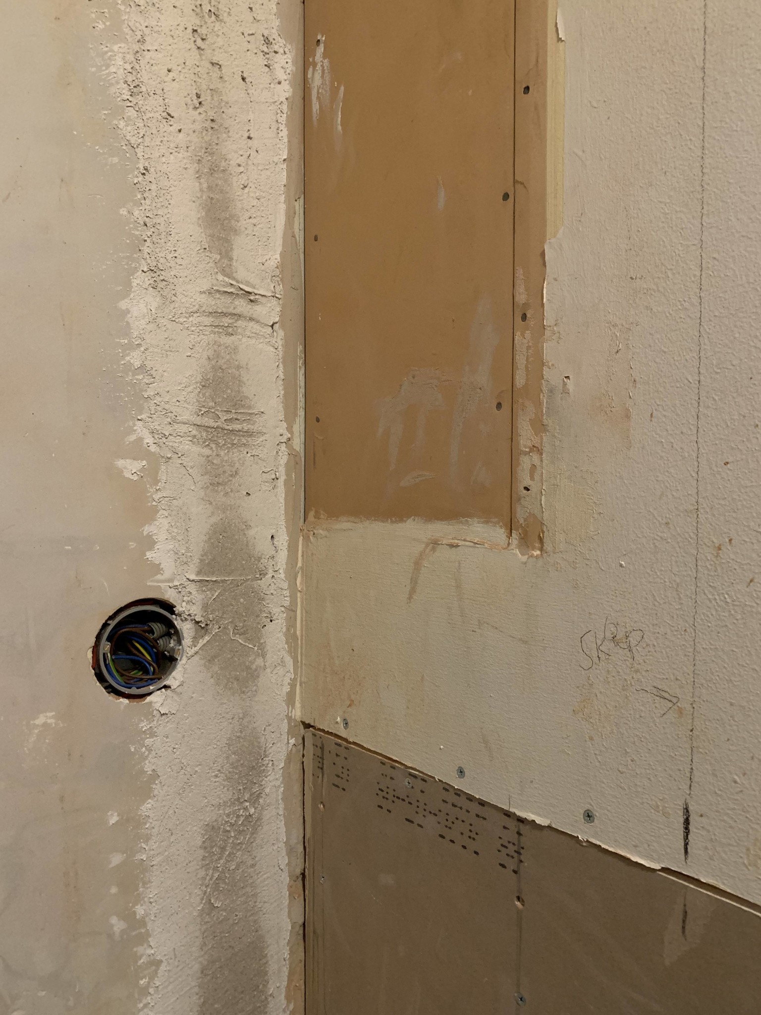 Jag funderar om jag ska ha kakel ända upp. Annars måste man göra snygg avslut mellan gipsskiva och tak och antar då att man måste spackla hela taket alternativt sätta nån list som döljer ”springan”