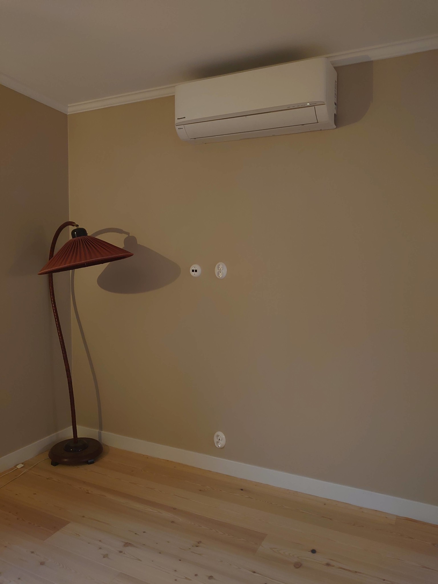 Som nämnts att dra rören uppåt under listen går inte då kondensvattnet i så fall kräver en kondensvatten pump. Vilket inte är standard. Satte in ett apr i vår somamrlägenhet och där förslogs kondenspumapr för att des kulle kunna göra en viss dragning. ajg ville inte ha in kostsamma pumpar som kan sluta funka med avtten läck som följd. Så de fick at den krångliga vägen..