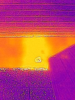 Hejsan jag upptäckte av en slump en stor kall fläck på ena ytterväggen i källaren i vårt hus (har en IR-kamera via jobbet). Gick ut och kollade från utsidan och ser att det är motsvarande varm fläck där. Har bifogat IR-bilder från insida och utsida.
