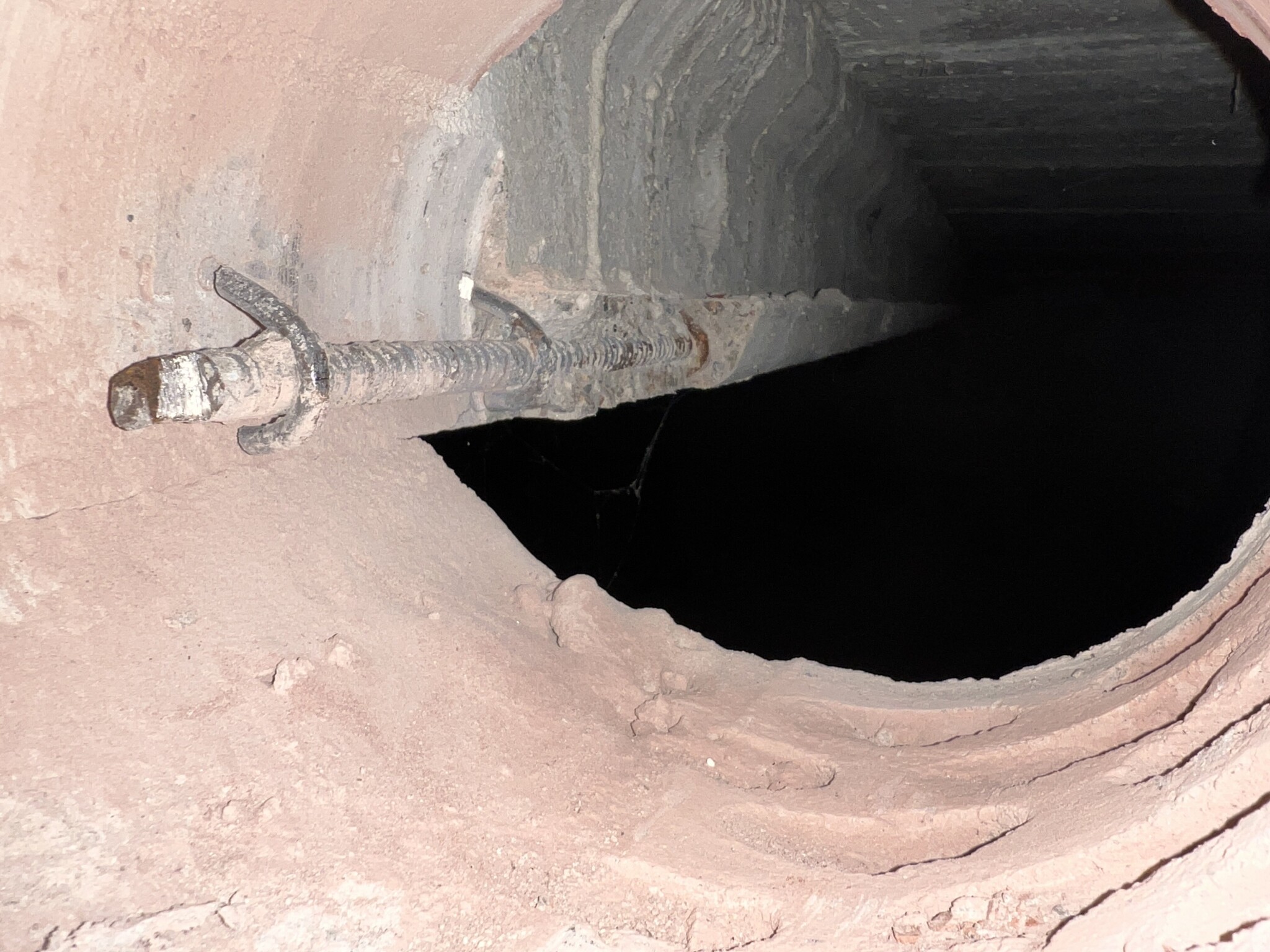 Håltagning utfördes hos oss i veckan i samband med installation av ventilationssystem. Jag tog en titt på hålen inifrån källarutrymmet och det ser ut som håltagaren har råkat komma för nära betongbalken och den har därmed skadats ner till armeringen.