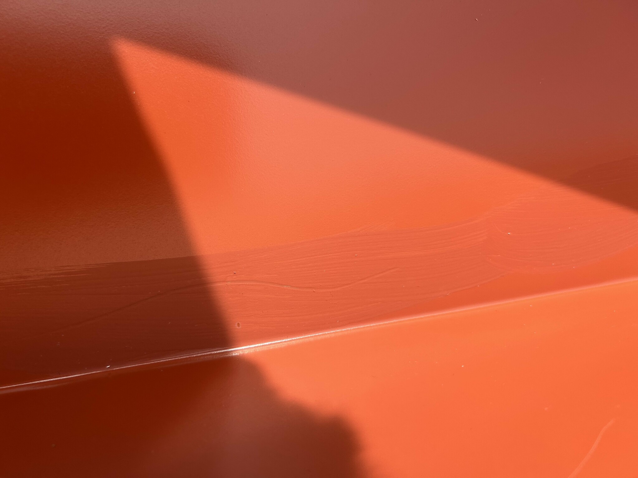Vid första anblicken tänkte jag att det redan börjat flagna, men vid närmare inspektion verkar det som att dessa områden var målade vid installationen då man troligtvis skadat dessa specifika områden. Efter att ha tvättat områdena med vatten ser de redan bättre ut, men man kan definitivt skymta skadorna under färgen, se bilder nedan.