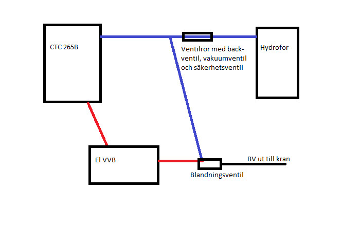Jo el VVB tänkte jag koppla in i serie på tappvattnet på pannan. Så att nu på vintern går det genom den hela tiden bara att jag har beredaren ställd på lägre temp. Sen på sommaren stänger jag bara av brännaren. Då skippar jag tank å fortsätter med brännare som det är bara att jag kopplar el vvb i serie.