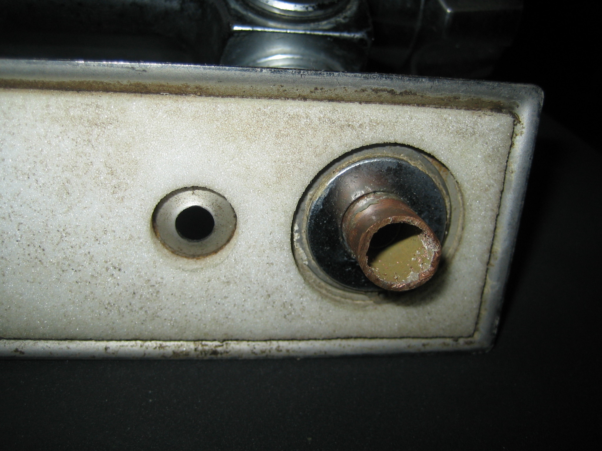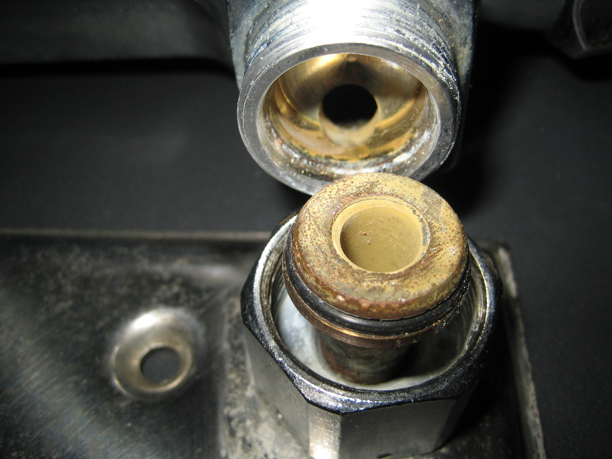 Om man det visste? Kanske ett hårstrå över o-ringen, kanske dåligt dragen, har ingen aning. Men eftersom jag aldrig sett något i skvallerhålen tror jag det läckt väldigt lite så att vattnet torkat bort och så har det byggt på kalken, först 1 hål sen det 2:a och det 3:dje, därefter går det in i väggen. På 18 år som det kan handla om, hinner det bli en del. Särskilt i mitt fall där väggens båda sidor var våtrumsvägg.
