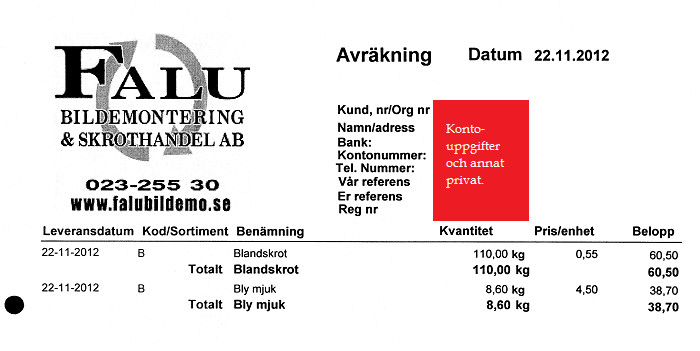 Kollade med en skrotfirma en gång, och då ställde dom ut en container, jag skulle fylla den och dom betalade X kr / ton, och gjorde ett avdrag för transport / hyra av container