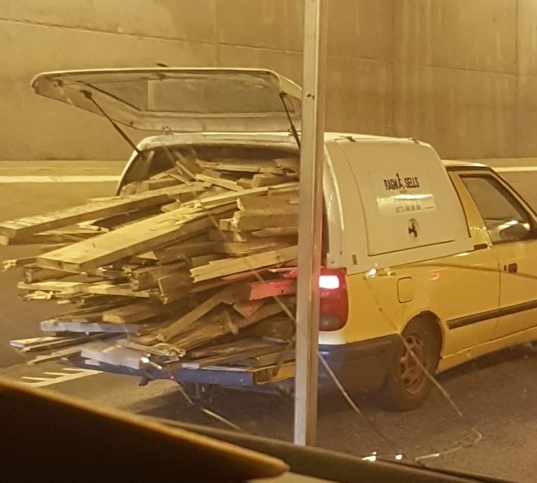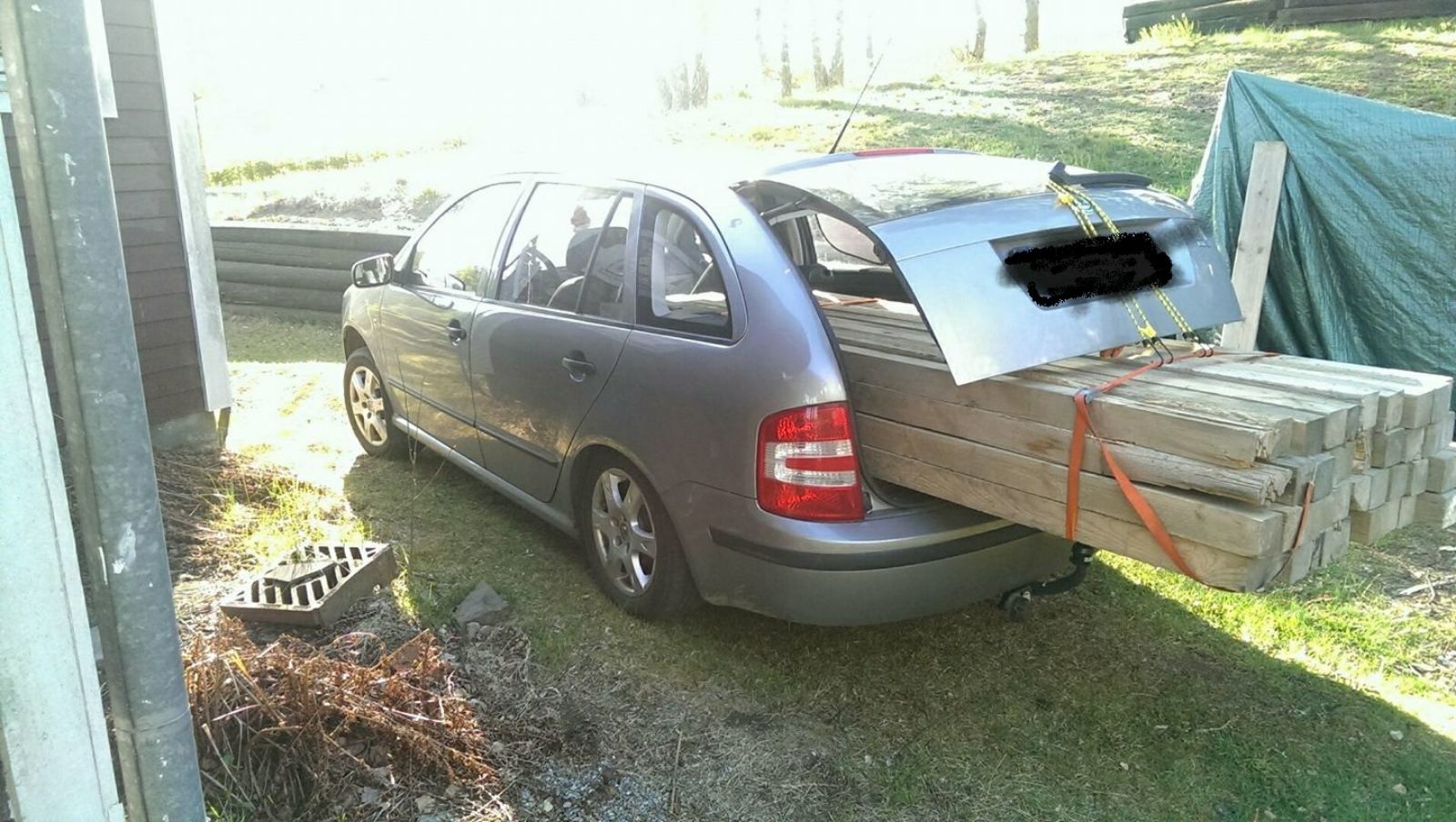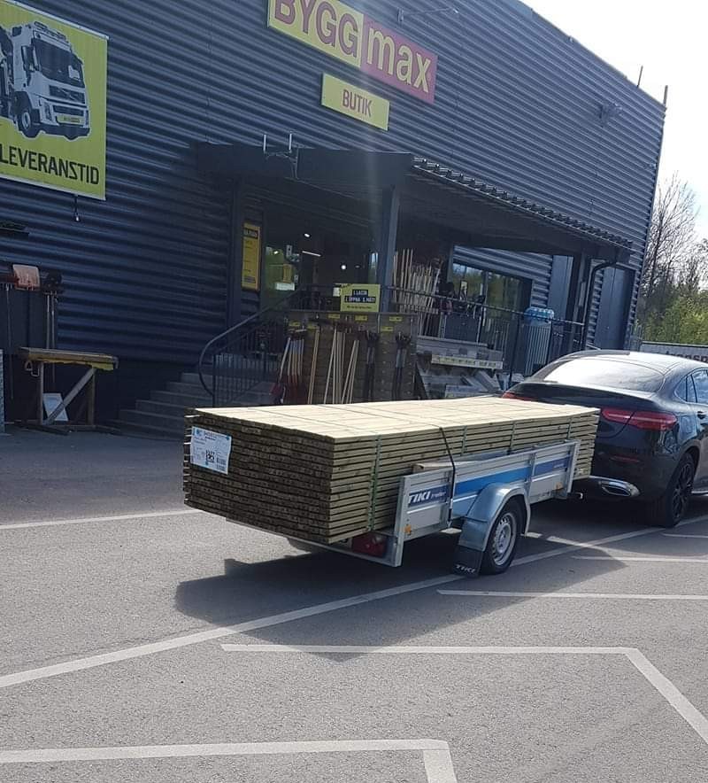 Där har du något. Eller om fordonet är så smalt att det inte passar spårvidden på släpet behöver man något för att fylla mellanrummet. Lasta på byggmaterialet och lägg en barncykel överst så borde det vara lugnt.O oas skrev: