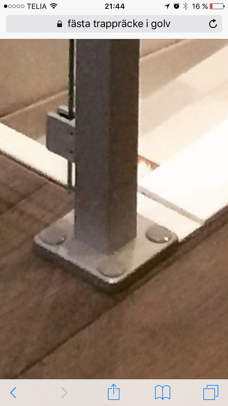 Jag hade använt skruvstift och någon matchande hattmutter, då går det även att lossa räcket vid behov utan att försämra infästningen i golvet.