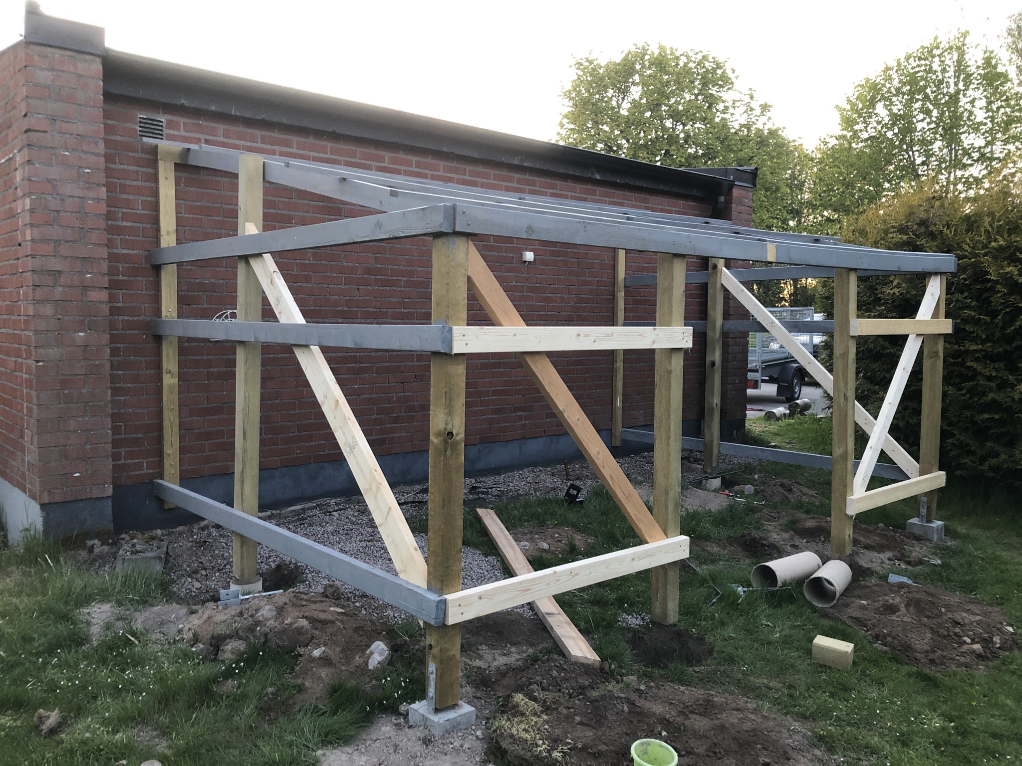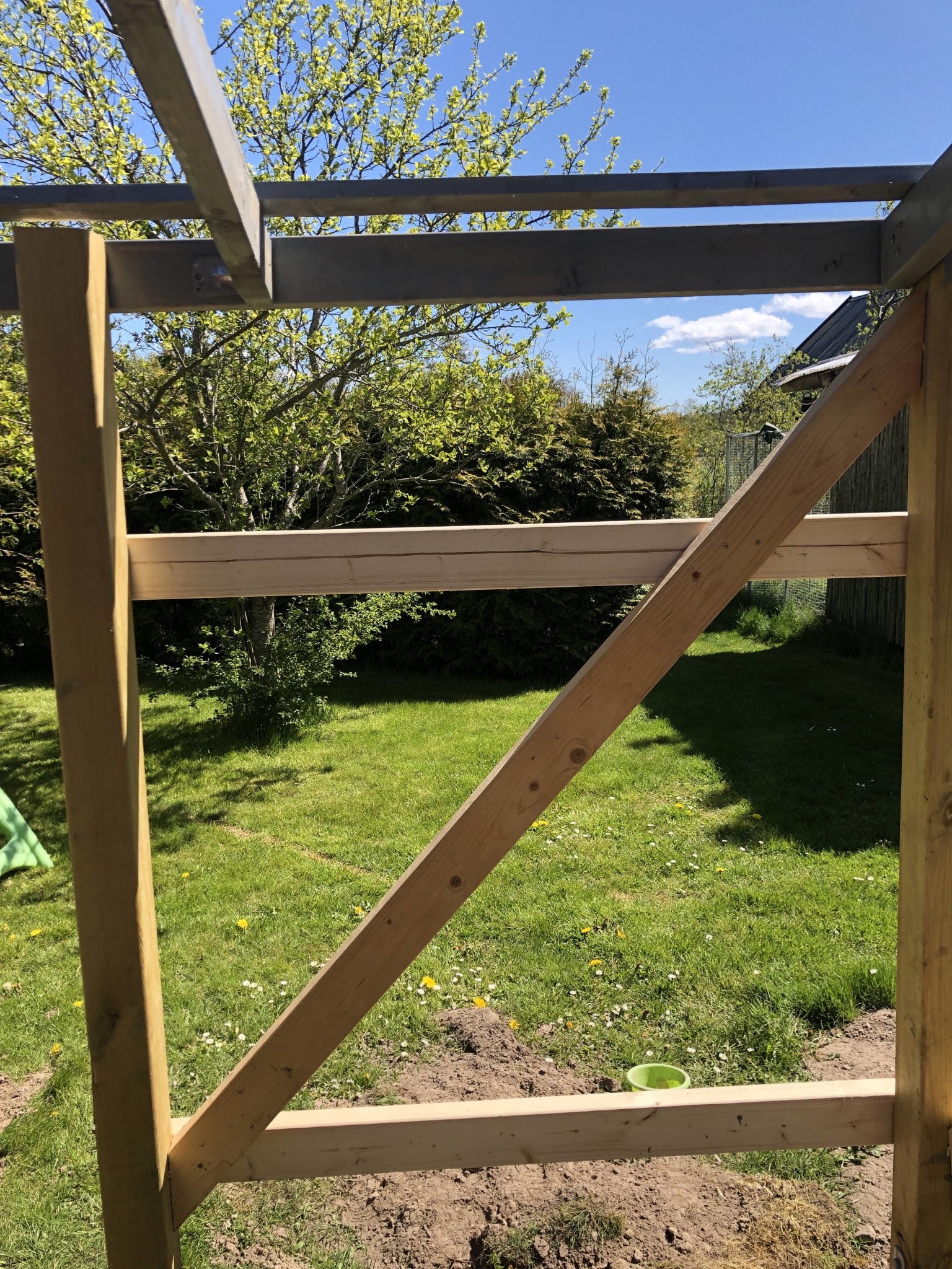 Jag hade bara tänkt att ifall du tänkt ha skivor på insidan så kunde du skippa diagonalstagningen helt, bara haft något enkelt provisoriskt fram till att första gipsskivan var på plats.