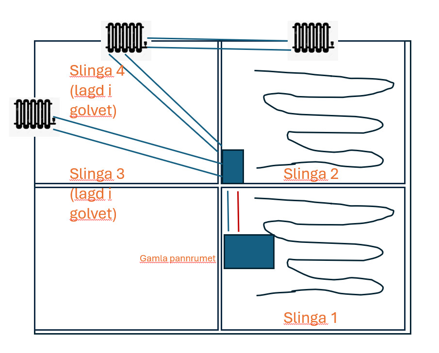 Men kan jag inte dra ned på golvvärmen också via fördelaren (slinga 1 och slinga2 som endast är gv)?