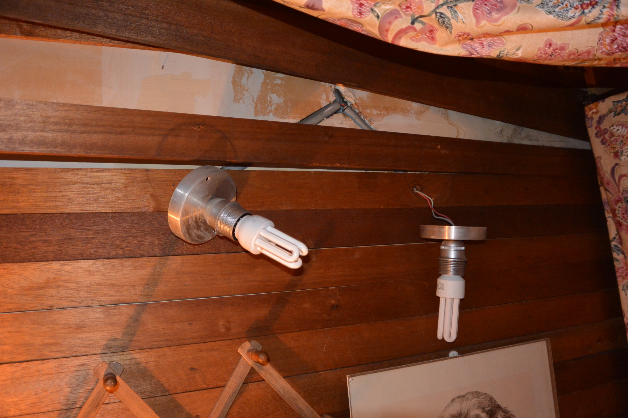 Med vanliga glödlampor funkade ljuset på toa. Jag ville inte ge mig på att koppla i Frankrike det tog en tid att förklara vad felet var via tolk!