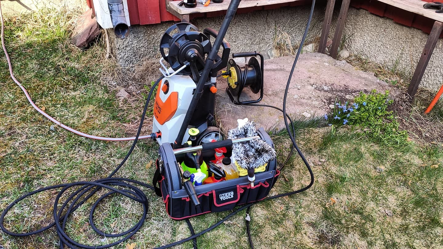 På vinter är det smidigt att kunna spola av den med skum för att få bort lite skit snabbt också.