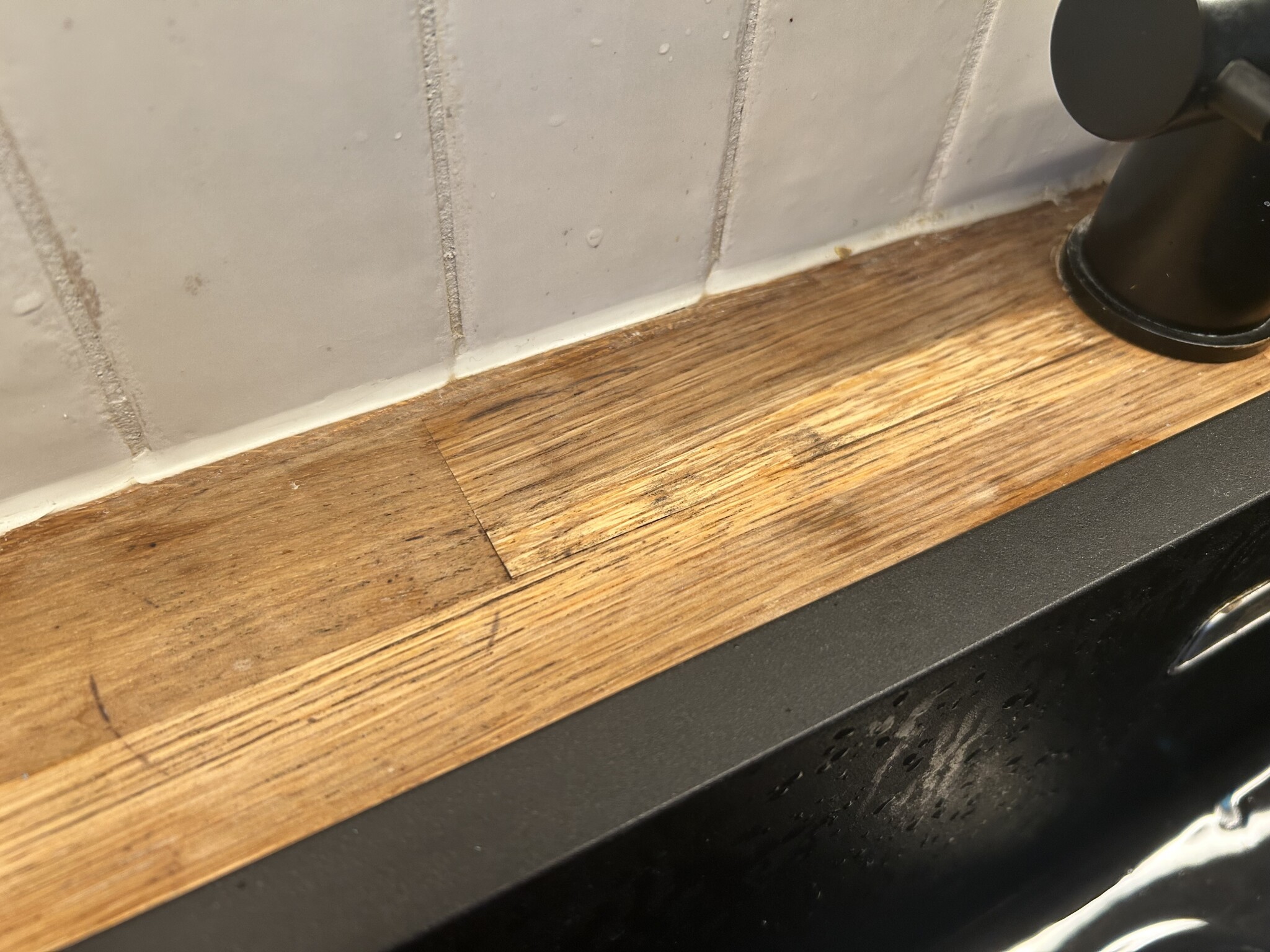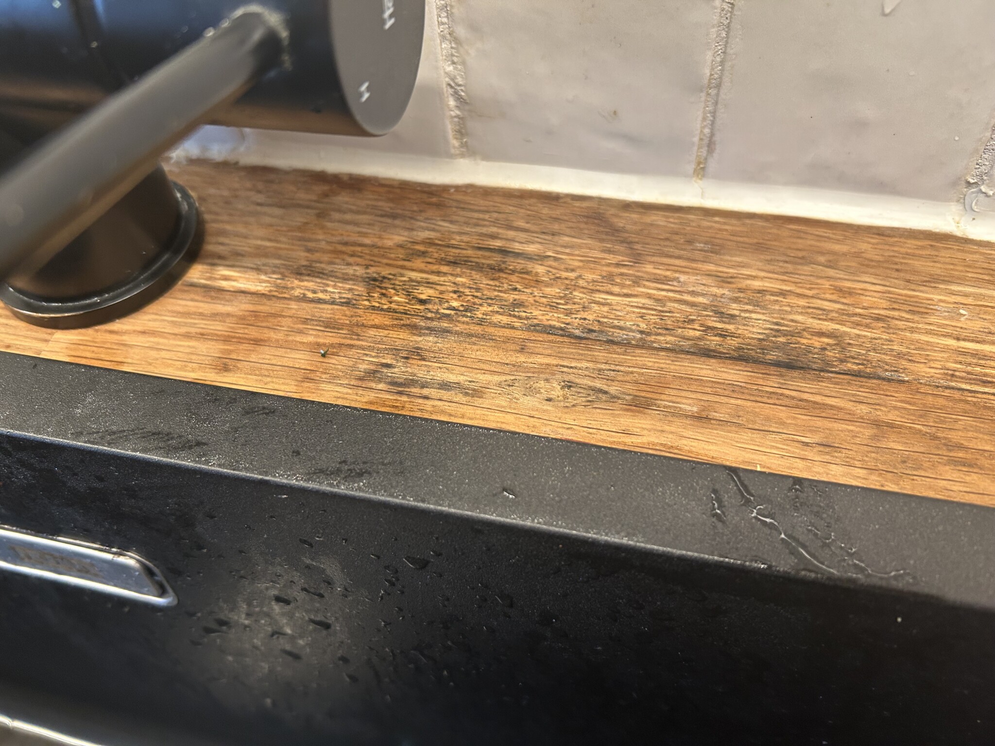 Jag har i mitt första kök nånsin satt på egen bänkskiva, diskho och blandare. Men som ni kan se på bilderna så samlas vatten runt blandaren och bänkskivan blir skadad. Jag ska restaurera detta och använda mer olja än sist, men jag undrar om det istället går att pensla epoxy eller annat vattentätt medel för att skydda skivan mellan diskho och kaklet?