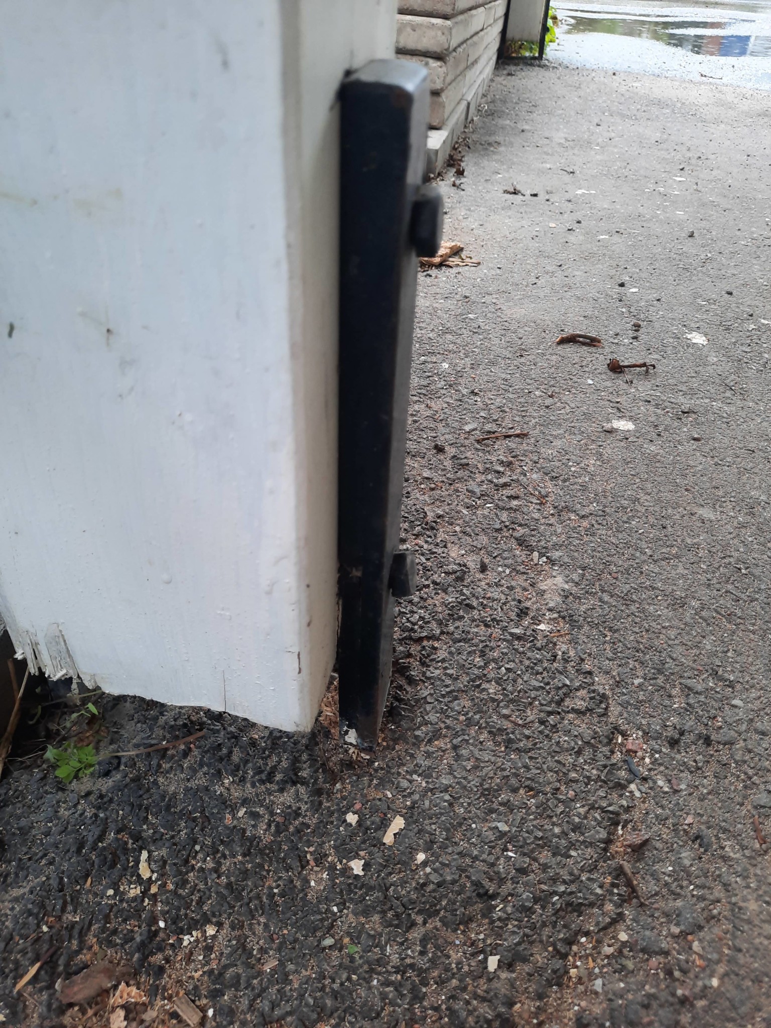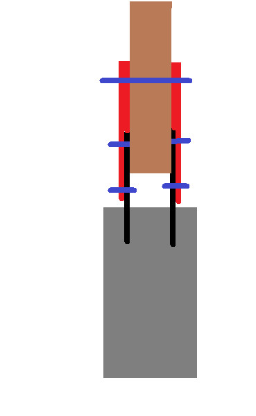 Så har har jag gjort med mina stolpar som hade trä ner i marken. Där var trät inte impregnerad och de började ruttna i botten. Det röda är nya järn som förlänger de gamla gör stolpen högre.