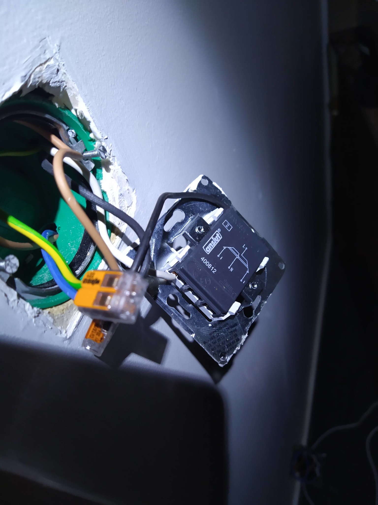 Men märker att skyddsjorden går över till blå för att sedan gå ner till N på eluttaget? Något känns skumt så vill gärna dubbelkolla detta, ska bara byta lampa och strömställare, strömställare var fel, och felkopplad. Bara koppla som det ligger nu?