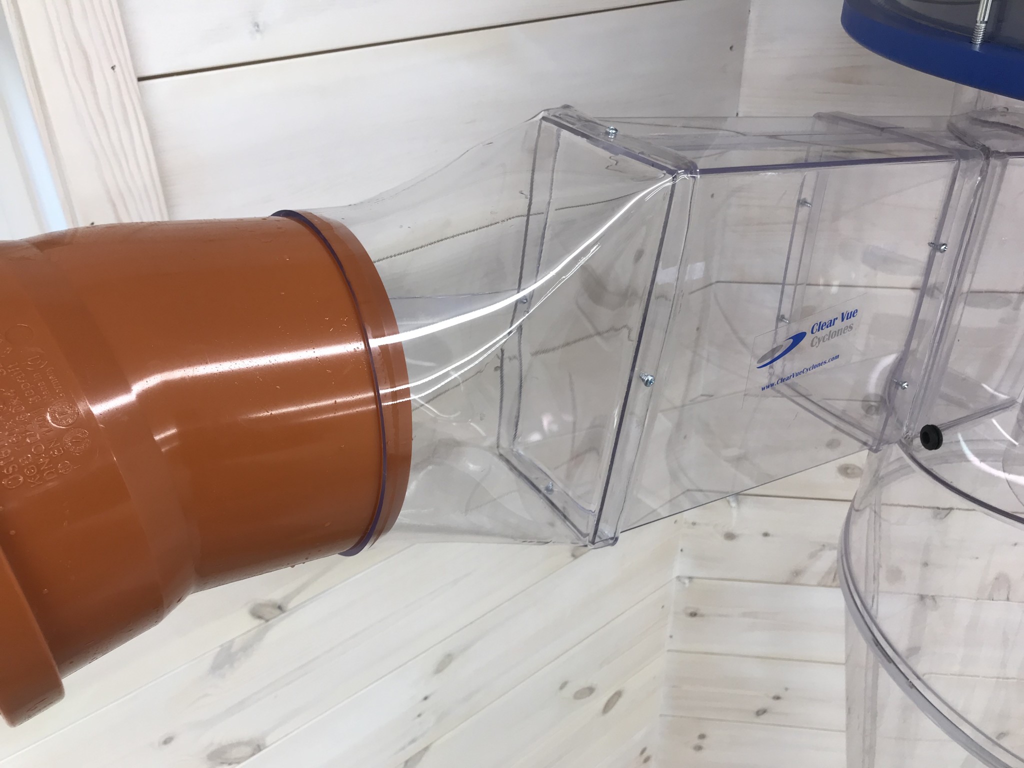 En god nyhet. Clearvue cyklonen levereras med inlopp som skall vara anpassad till 6" sewer and drain PVC. Jag trodde jag skulle behöva krångla med någon hemgjord övergång eftersom jag tänkt använda 160mm PVC markavloppsrör.