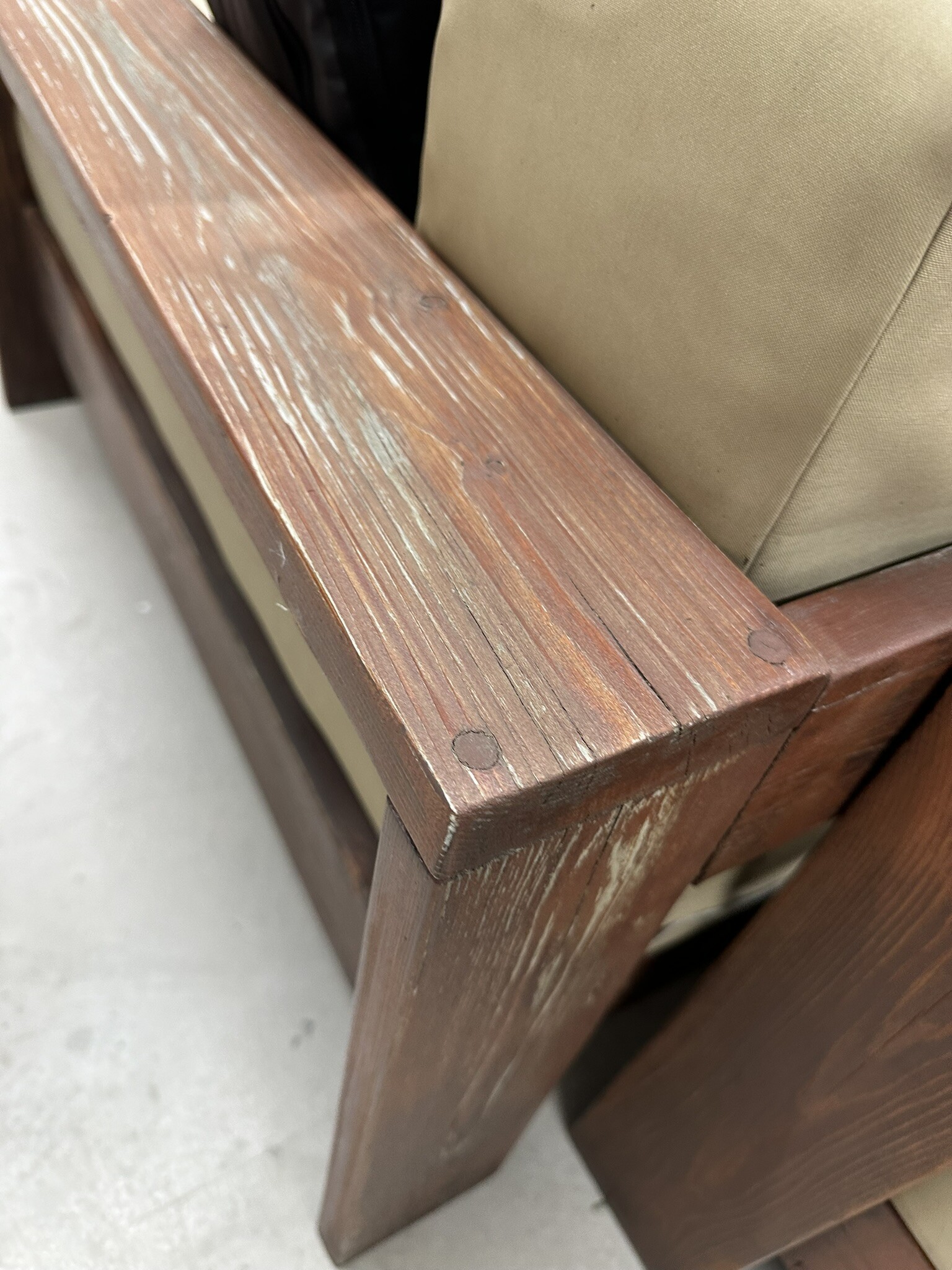 Köpte ett loungeset i trä begagnat, säljaren var inte helt säker på träslag men att det var ett träslag som var anpassat för att vara utomhus (han hade specialbeställt möblerna).